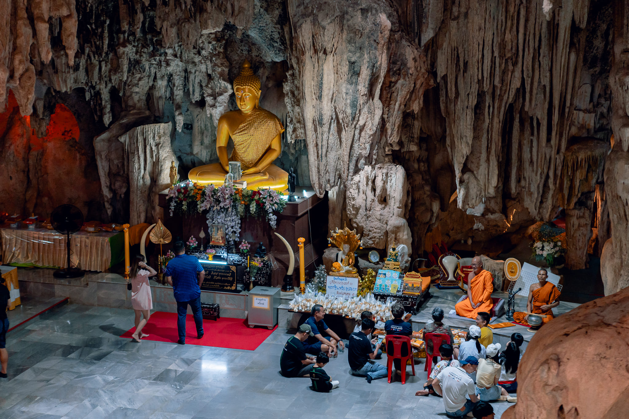 ก่อนแวะรับประทานอาหารกลางวันร่วมกันที่ร้านคีรีมันตรา ร้านอาหารไทยพื้นบ้านที่โอบล้อมไปด้วยธรรมชาติขุนเขา โดยได้รับการต้อนรับจากการท่องเที่ยวแห่งประเทศไทย สำนักงานกาญจนบุรี พร้อมมอบทุนการศึกษาให้กับนักเรียนโรงเรียน บ้านวังสารภี จำนวน 30,000 บาท รวมถึงเยี่ยมชมวัดถ้ำพุหว้า วัดชื่อดังประจำจังหวัดเพื่อสักการะพระพุทธรูปขนาดใหญ่และพระบรมสารีริกธาตุ
