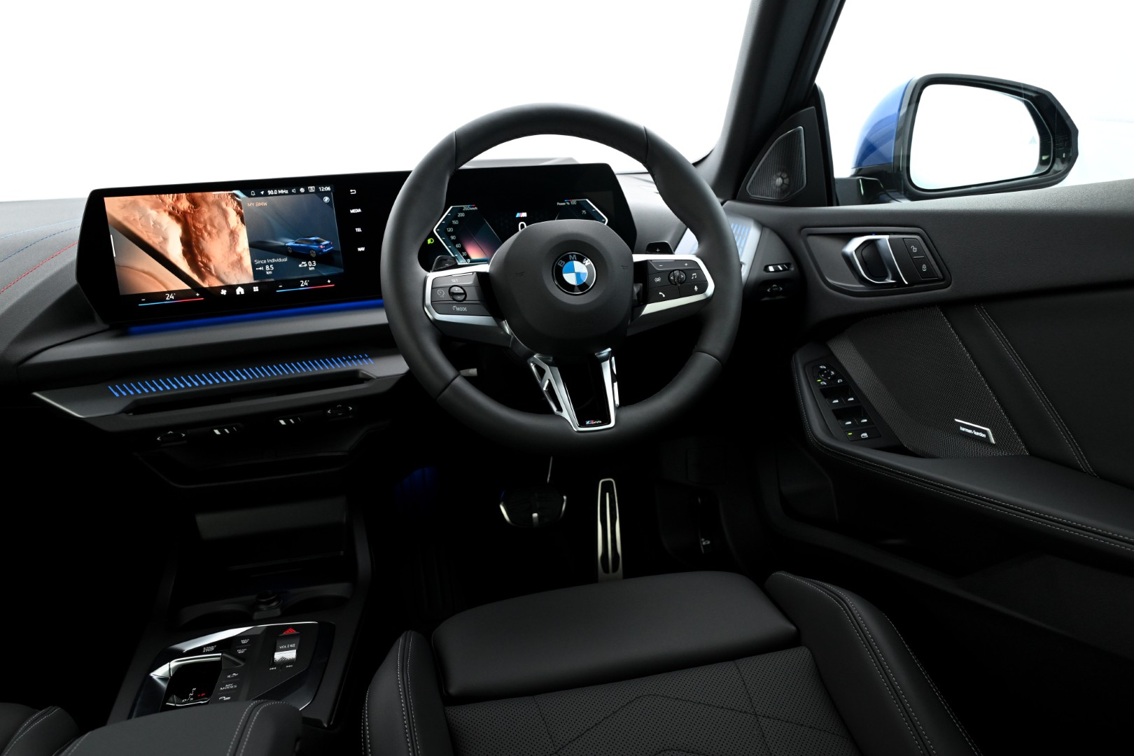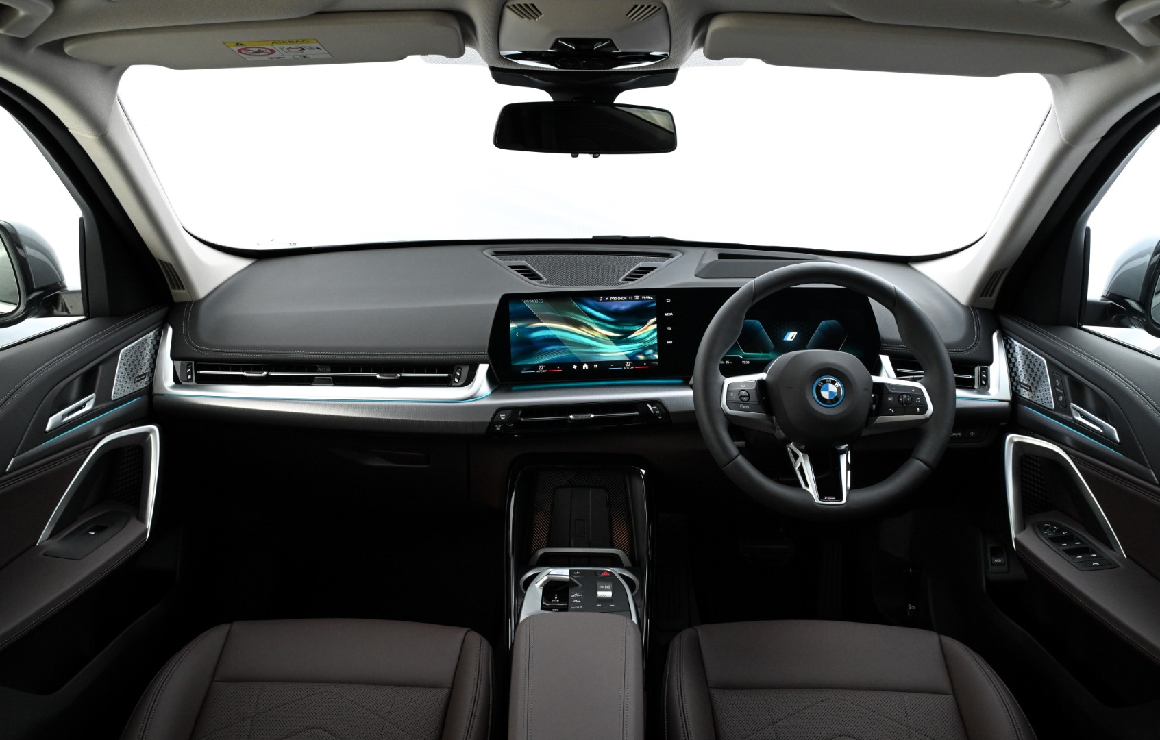 ห้องโดยสารของบีเอ็มดับเบิลยู iX1 eDrive20L M Sport ใหม่ เอาใจผู้ขับขี่ไม่แพ้ผู้โดยสารด้วยพวงมาลัยหนังสไตล์ M พร้อมแป้นเปลี่ยนเกียร์ ระบบช่วยเหลือผู้ขับขี่ครบครันจากแพ็คเกจ Driving Assistant Plus และ Parking Assistant Plus (รวมระบบกล้องมองรอบคัน Surround View) พร้อมรองรับการอัปเกรดสู่ Parking Assistant Professional ที่เพิ่มความสามารถในการควบคุมการจอดรถได้ผ่านโทรศัพท์มือถือสมาร์ทโฟน และสามารถจดจำรูปแบบการจอดรถอัตโนมัติได้ถึง 10 แบบ รวมระยะทาง 600 เมตร พร้อมด้วยฟังก์ชั่นอื่นๆ อีกมากมายที่สามารถเลือกซื่อเพิ่มเติมได้ผ่าน BMW Connected Drive Store นอกจากนี้ iX1 eDrive20L M Sport ยังมาพร้อมกับระบบปฏิบัติการ BMW Operating System 9 รุ่นล่าสุด ติดตั้งมาให้เป็นมาตรฐานควบคุมได้ผ่านหน้าจอ Control Display ขนาด 10.7 นิ้ว พร้อมด้วยแผงหน้าปัดดิจิทัลขนาด 10.25 นิ้วและ BMW Head-Up Display พร้อมป้อนข้อมูลสำคัญให้ผู้ขับขี่ได้รับทราบโดยไม่ต้องละสายตาจากเส้นทางข้างหน้า ส่วนชุดเครื่องเสียงไฮเอนด์จาก Harman Kardon พร้อมเติมความรื่นรมย์ให้กับทุกขณะของการเดินทาง