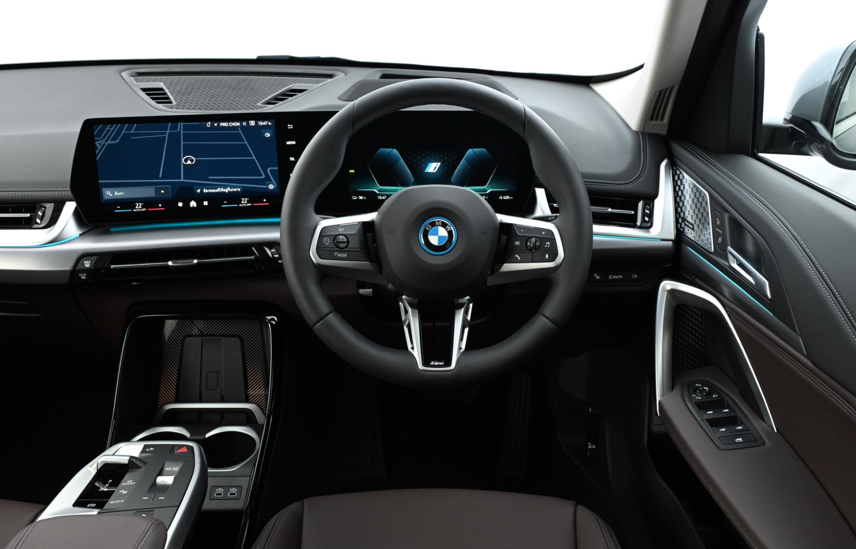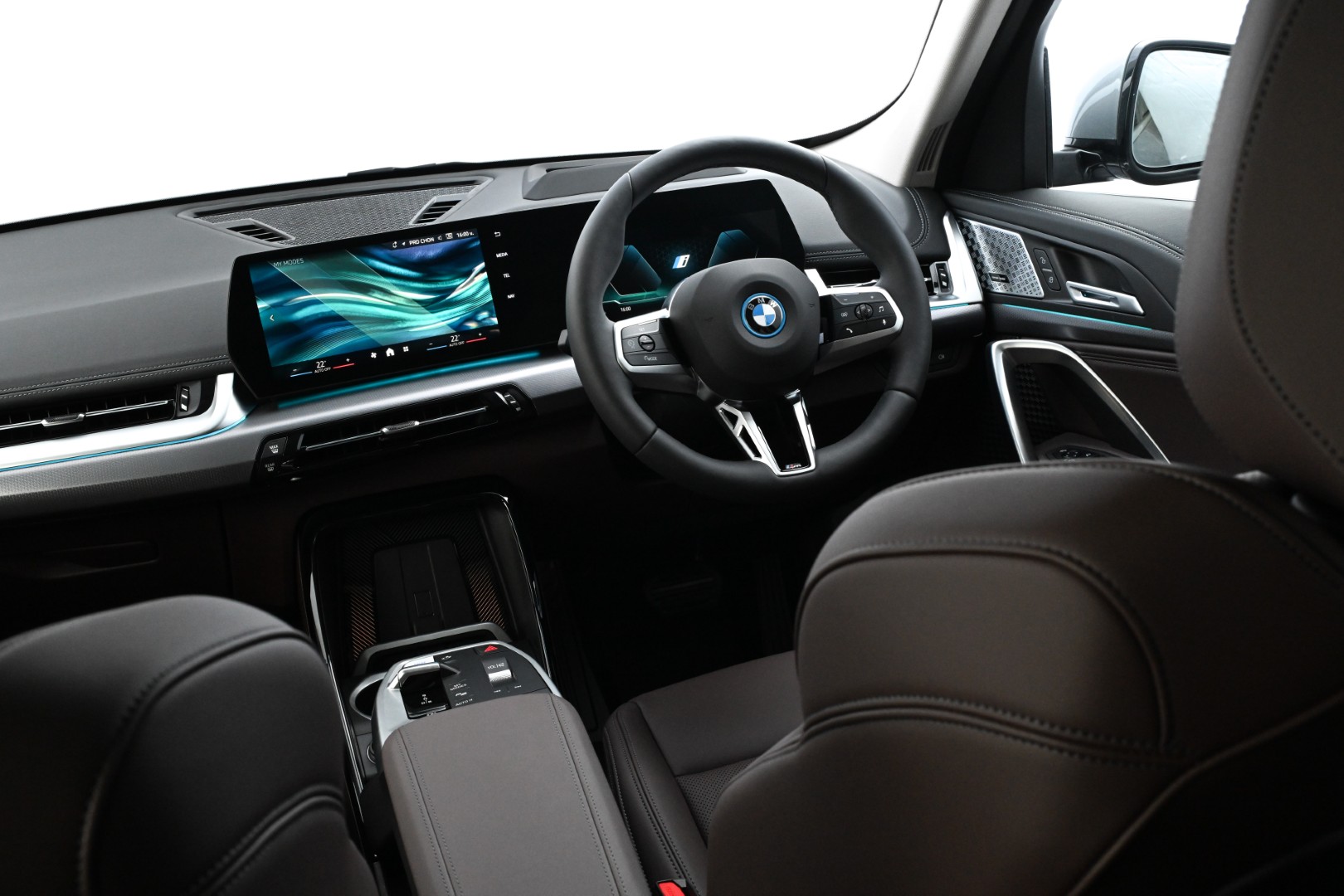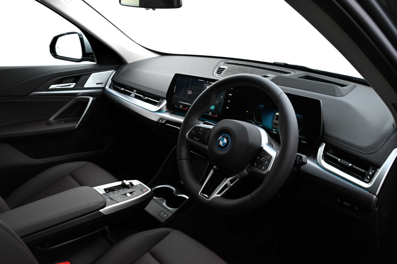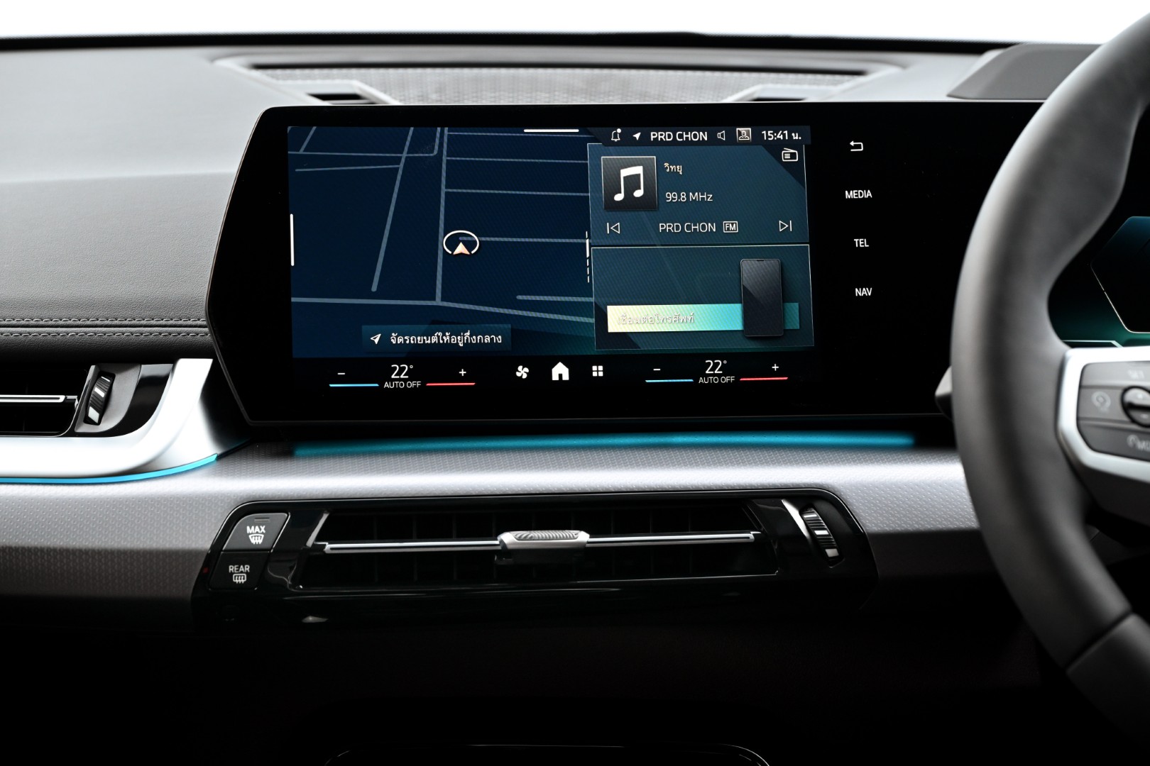 ห้องโดยสารของบีเอ็มดับเบิลยู iX1 eDrive20L M Sport ใหม่ เอาใจผู้ขับขี่ไม่แพ้ผู้โดยสารด้วยพวงมาลัยหนังสไตล์ M พร้อมแป้นเปลี่ยนเกียร์ ระบบช่วยเหลือผู้ขับขี่ครบครันจากแพ็คเกจ Driving Assistant Plus และ Parking Assistant Plus (รวมระบบกล้องมองรอบคัน Surround View) พร้อมรองรับการอัปเกรดสู่ Parking Assistant Professional ที่เพิ่มความสามารถในการควบคุมการจอดรถได้ผ่านโทรศัพท์มือถือสมาร์ทโฟน และสามารถจดจำรูปแบบการจอดรถอัตโนมัติได้ถึง 10 แบบ รวมระยะทาง 600 เมตร พร้อมด้วยฟังก์ชั่นอื่นๆ อีกมากมายที่สามารถเลือกซื่อเพิ่มเติมได้ผ่าน BMW Connected Drive Store นอกจากนี้ iX1 eDrive20L M Sport ยังมาพร้อมกับระบบปฏิบัติการ BMW Operating System 9 รุ่นล่าสุด ติดตั้งมาให้เป็นมาตรฐานควบคุมได้ผ่านหน้าจอ Control Display ขนาด 10.7 นิ้ว พร้อมด้วยแผงหน้าปัดดิจิทัลขนาด 10.25 นิ้วและ BMW Head-Up Display พร้อมป้อนข้อมูลสำคัญให้ผู้ขับขี่ได้รับทราบโดยไม่ต้องละสายตาจากเส้นทางข้างหน้า ส่วนชุดเครื่องเสียงไฮเอนด์จาก Harman Kardon พร้อมเติมความรื่นรมย์ให้กับทุกขณะของการเดินทาง