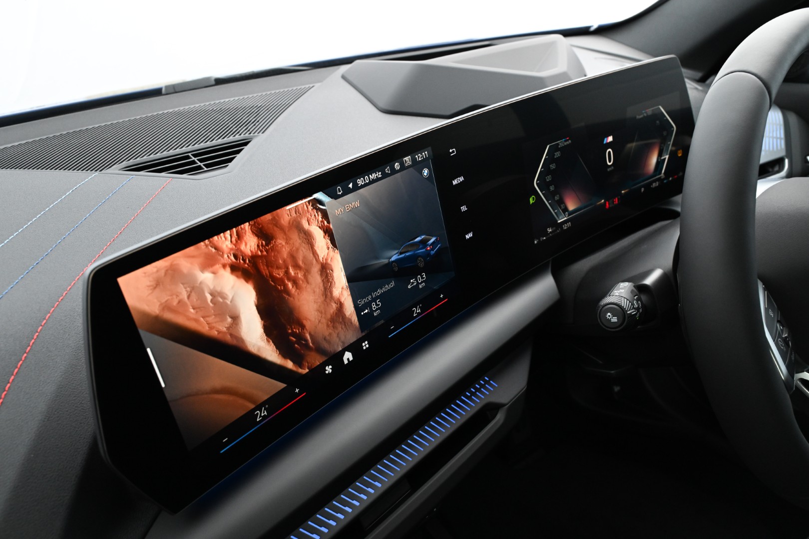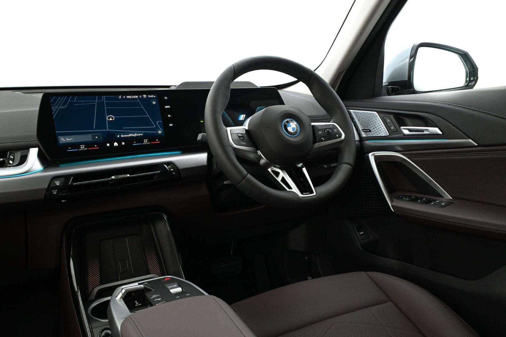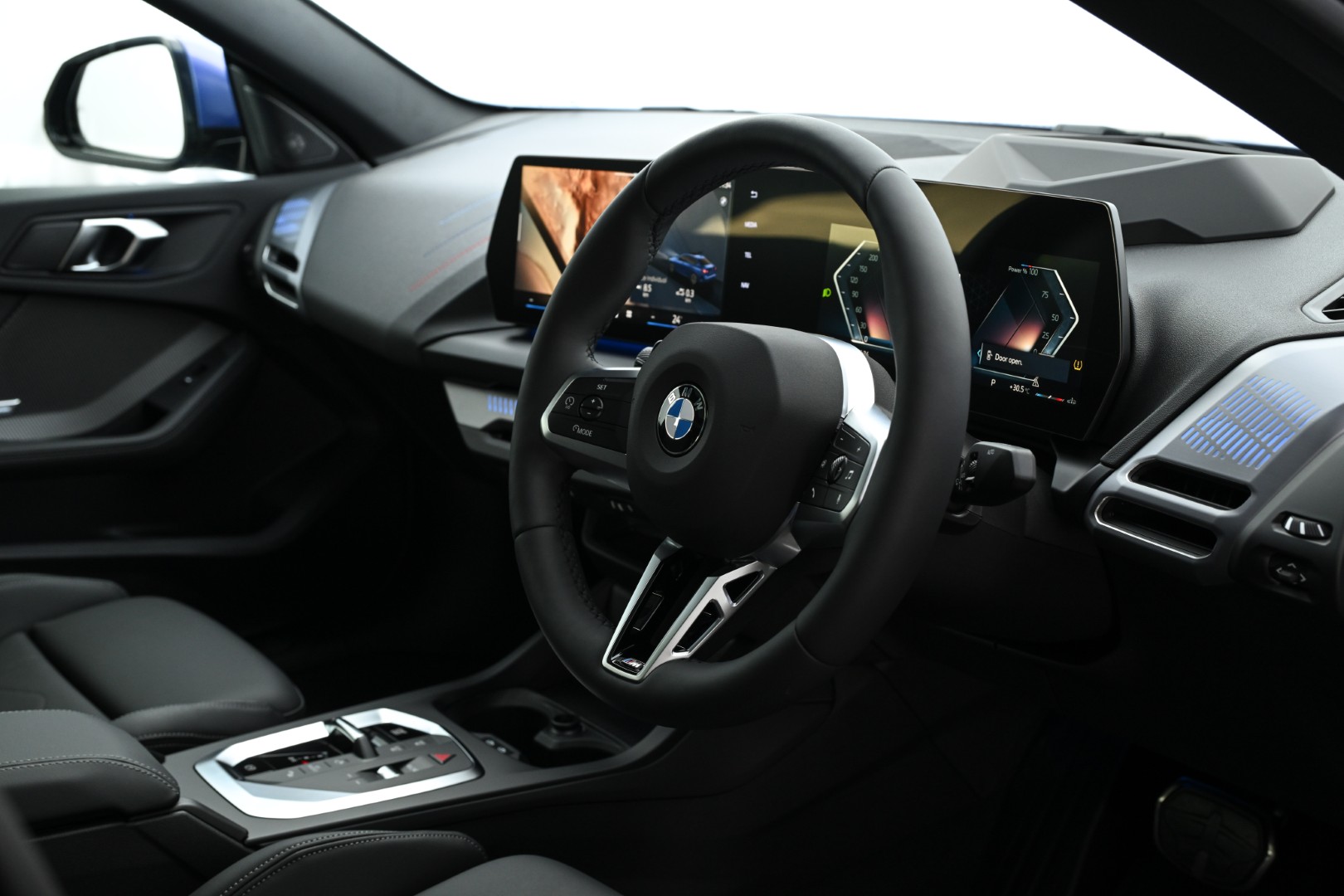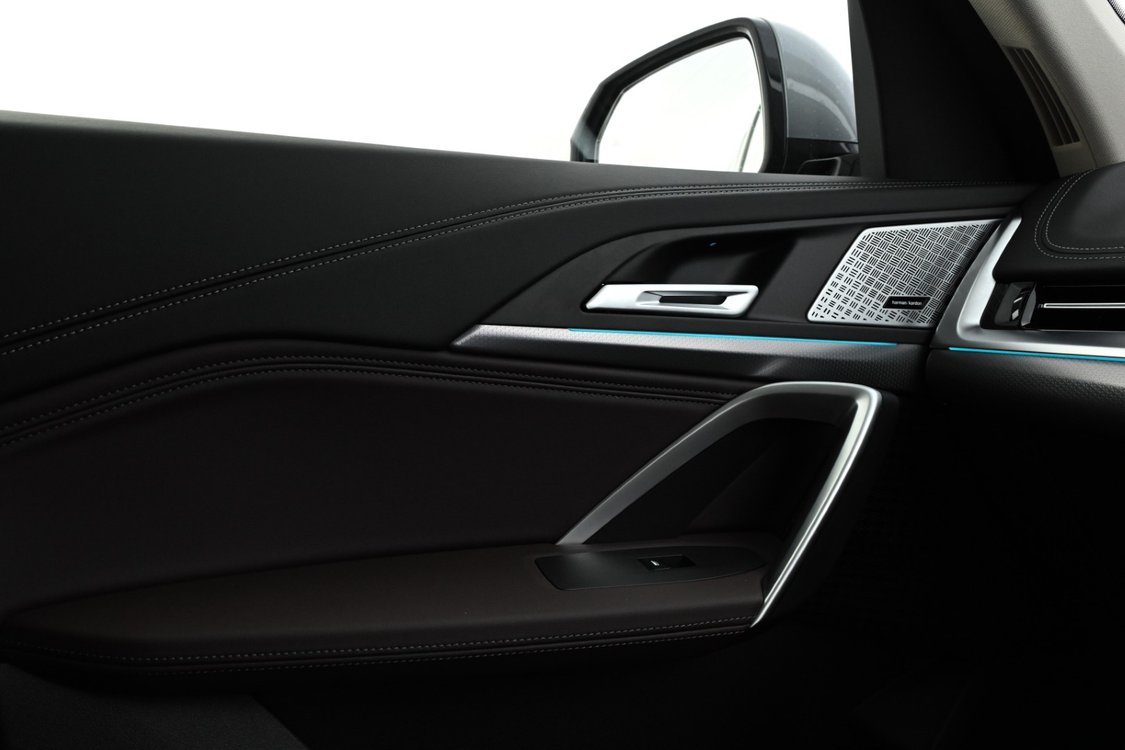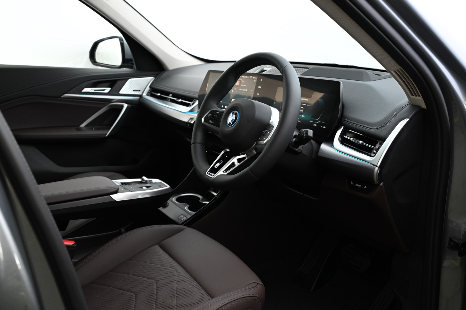 ห้องโดยสารของบีเอ็มดับเบิลยู iX1 eDrive20L M Sport ใหม่ เอาใจผู้ขับขี่ไม่แพ้ผู้โดยสารด้วยพวงมาลัยหนังสไตล์ M พร้อมแป้นเปลี่ยนเกียร์ ระบบช่วยเหลือผู้ขับขี่ครบครันจากแพ็คเกจ Driving Assistant Plus และ Parking Assistant Plus (รวมระบบกล้องมองรอบคัน Surround View) พร้อมรองรับการอัปเกรดสู่ Parking Assistant Professional ที่เพิ่มความสามารถในการควบคุมการจอดรถได้ผ่านโทรศัพท์มือถือสมาร์ทโฟน และสามารถจดจำรูปแบบการจอดรถอัตโนมัติได้ถึง 10 แบบ รวมระยะทาง 600 เมตร พร้อมด้วยฟังก์ชั่นอื่นๆ อีกมากมายที่สามารถเลือกซื่อเพิ่มเติมได้ผ่าน BMW Connected Drive Store นอกจากนี้ iX1 eDrive20L M Sport ยังมาพร้อมกับระบบปฏิบัติการ BMW Operating System 9 รุ่นล่าสุด ติดตั้งมาให้เป็นมาตรฐานควบคุมได้ผ่านหน้าจอ Control Display ขนาด 10.7 นิ้ว พร้อมด้วยแผงหน้าปัดดิจิทัลขนาด 10.25 นิ้วและ BMW Head-Up Display พร้อมป้อนข้อมูลสำคัญให้ผู้ขับขี่ได้รับทราบโดยไม่ต้องละสายตาจากเส้นทางข้างหน้า ส่วนชุดเครื่องเสียงไฮเอนด์จาก Harman Kardon พร้อมเติมความรื่นรมย์ให้กับทุกขณะของการเดินทาง