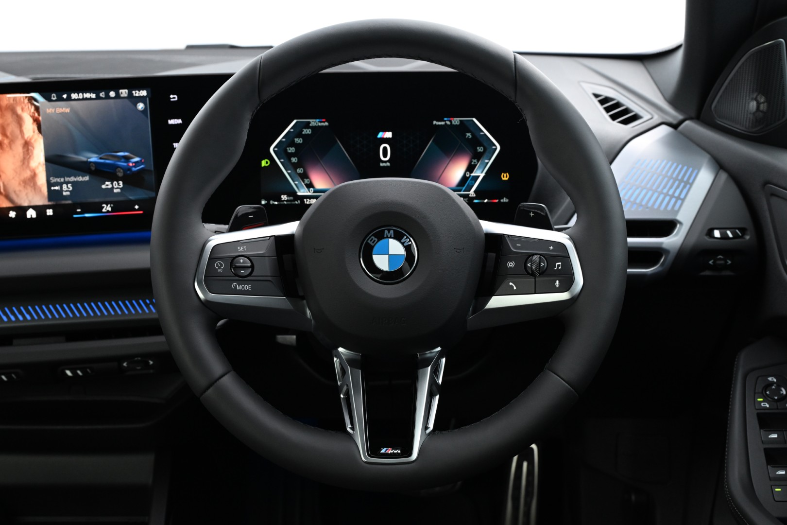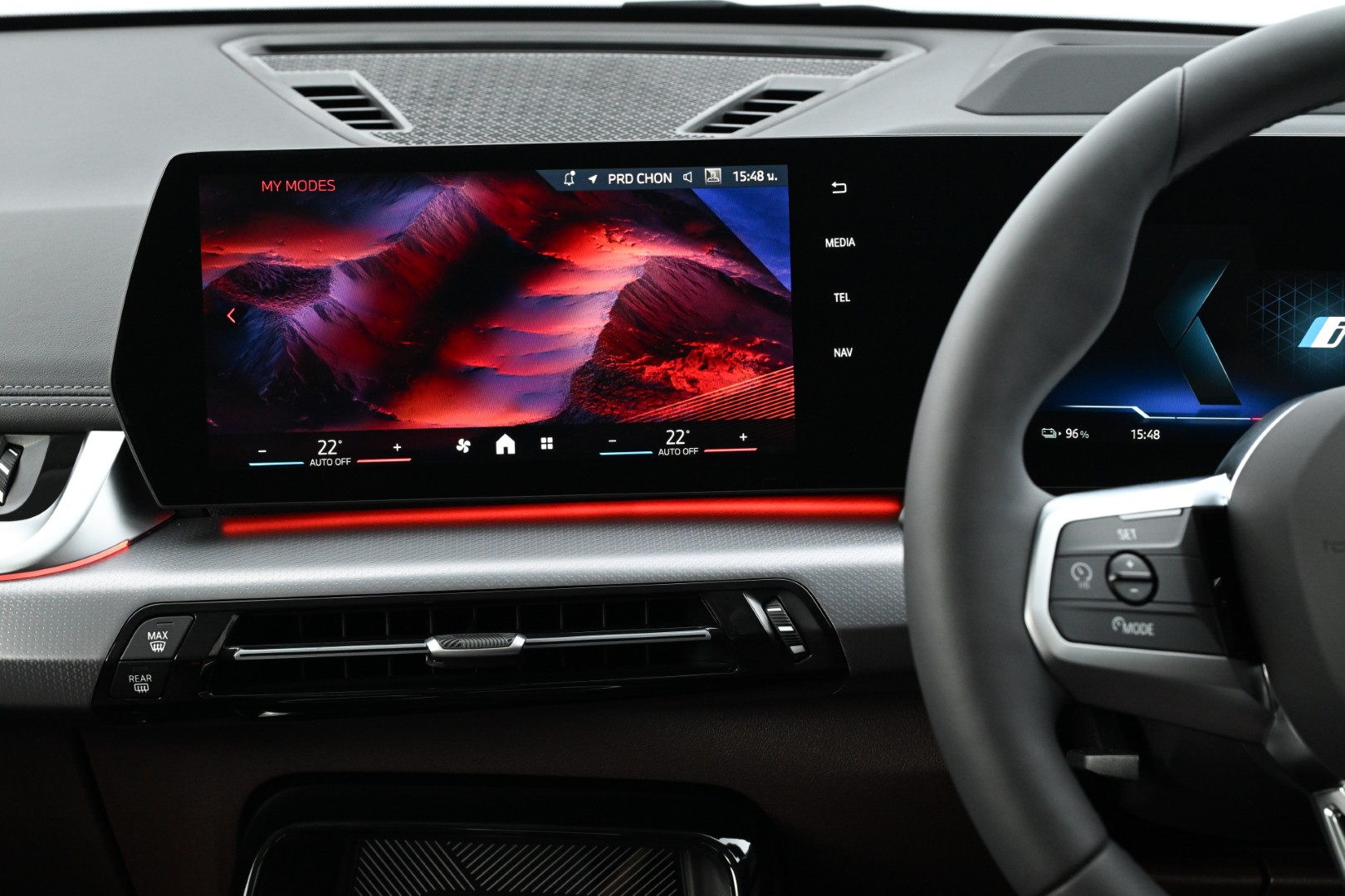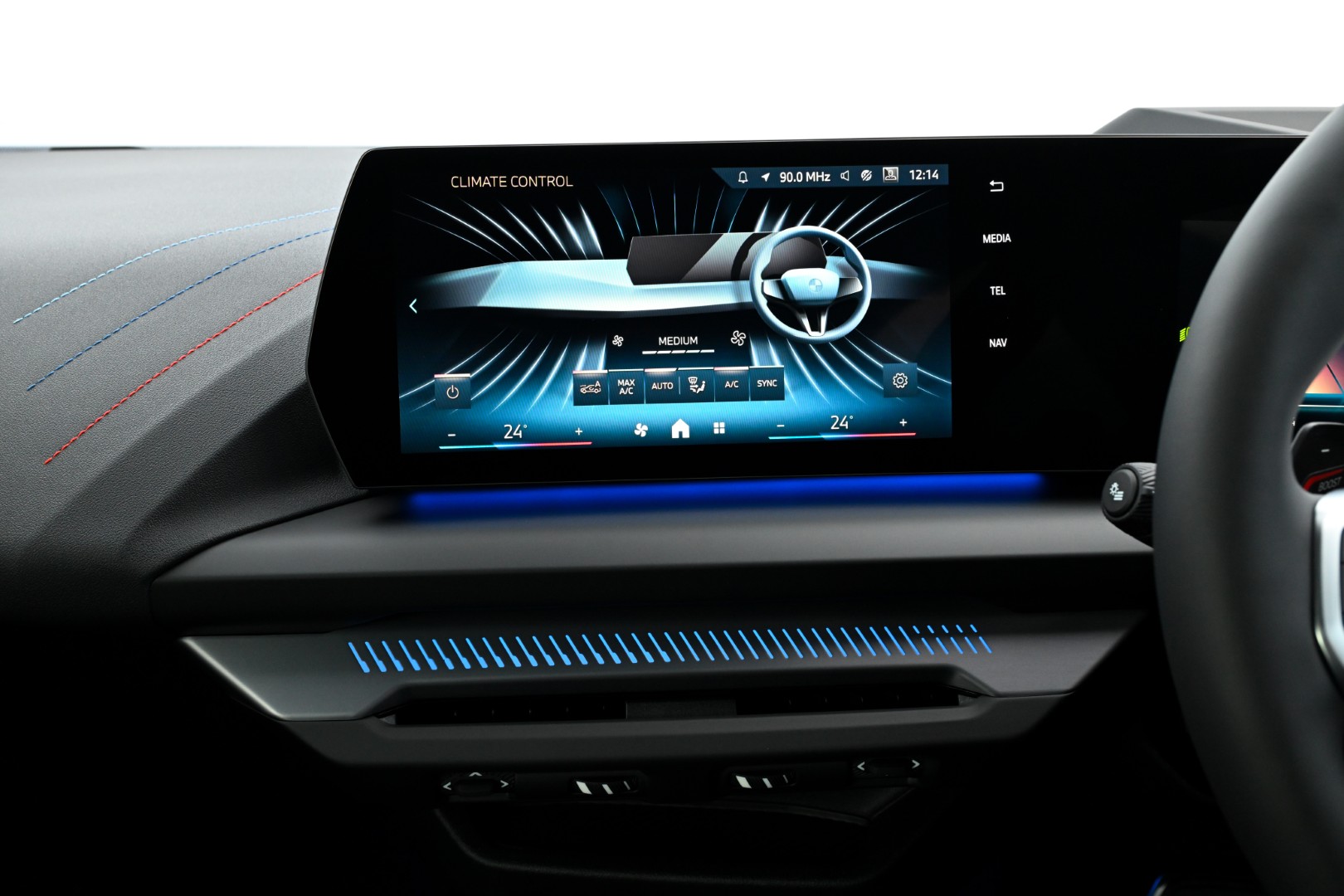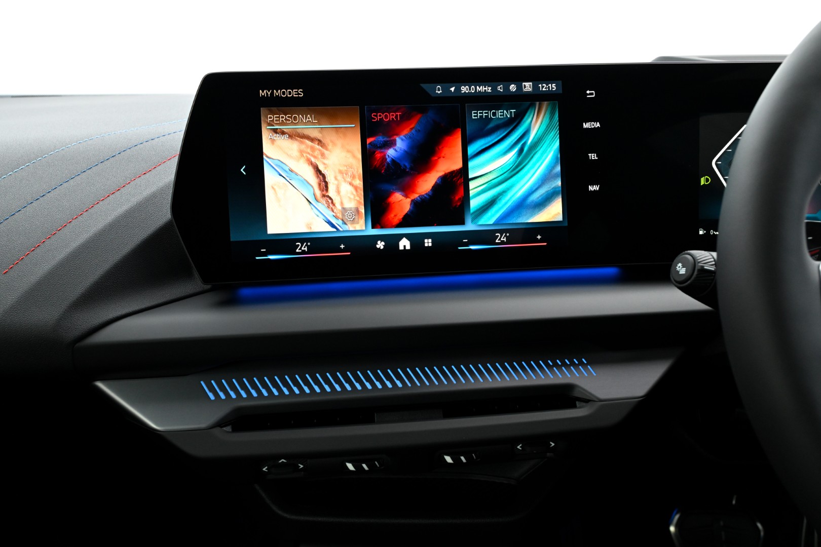 ห้องโดยสารของบีเอ็มดับเบิลยู iX1 eDrive20L M Sport ใหม่ เอาใจผู้ขับขี่ไม่แพ้ผู้โดยสารด้วยพวงมาลัยหนังสไตล์ M พร้อมแป้นเปลี่ยนเกียร์ ระบบช่วยเหลือผู้ขับขี่ครบครันจากแพ็คเกจ Driving Assistant Plus และ Parking Assistant Plus (รวมระบบกล้องมองรอบคัน Surround View) พร้อมรองรับการอัปเกรดสู่ Parking Assistant Professional ที่เพิ่มความสามารถในการควบคุมการจอดรถได้ผ่านโทรศัพท์มือถือสมาร์ทโฟน และสามารถจดจำรูปแบบการจอดรถอัตโนมัติได้ถึง 10 แบบ รวมระยะทาง 600 เมตร พร้อมด้วยฟังก์ชั่นอื่นๆ อีกมากมายที่สามารถเลือกซื่อเพิ่มเติมได้ผ่าน BMW Connected Drive Store นอกจากนี้ iX1 eDrive20L M Sport ยังมาพร้อมกับระบบปฏิบัติการ BMW Operating System 9 รุ่นล่าสุด ติดตั้งมาให้เป็นมาตรฐานควบคุมได้ผ่านหน้าจอ Control Display ขนาด 10.7 นิ้ว พร้อมด้วยแผงหน้าปัดดิจิทัลขนาด 10.25 นิ้วและ BMW Head-Up Display พร้อมป้อนข้อมูลสำคัญให้ผู้ขับขี่ได้รับทราบโดยไม่ต้องละสายตาจากเส้นทางข้างหน้า ส่วนชุดเครื่องเสียงไฮเอนด์จาก Harman Kardon พร้อมเติมความรื่นรมย์ให้กับทุกขณะของการเดินทาง
