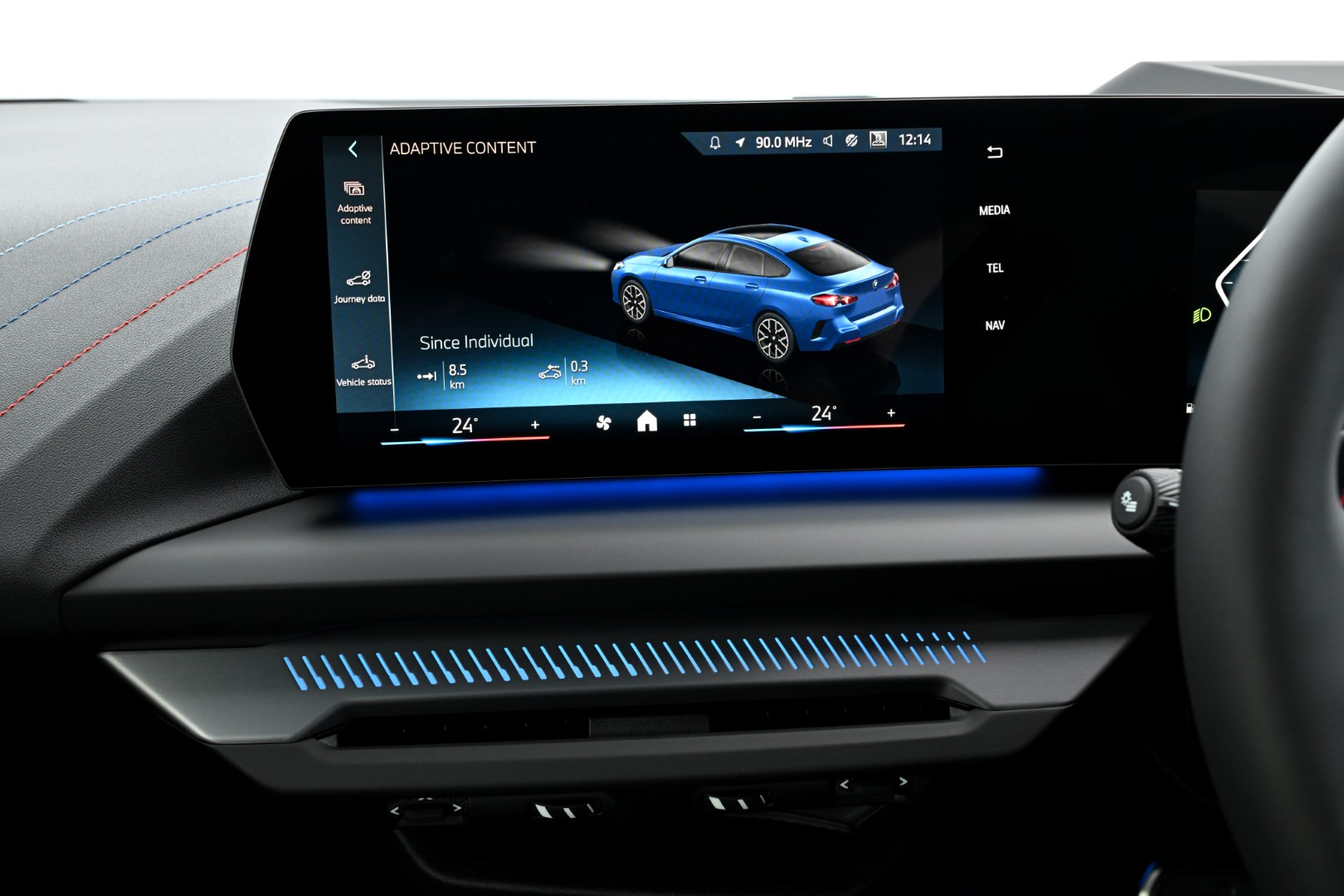 ห้องโดยสารของบีเอ็มดับเบิลยู 220 Gran Coupé M Sport Pro ใหม่ ยังคงมาพร้อมกับหลังคากระจก Panorama Glass Roof เช่นเดียวกับซีรีส์ 2 Gran Coupé รุ่นก่อนหน้า แต่ได้รับการปรับโฉมแบบรอบด้านในส่วนอื่น นับตั้งแต่เบาะนั่งแบบสปอร์ตที่หุ้มด้วยวัสดุ Veganza ชุดแต่งภายในแบบ Illuminated ในโทนสีเทา-ดำ Aluminium Graphite ที่มาพร้อมไฟแต่งห้องโดยสารในตัว และตะเข็บบนพื้นผิวต่างๆ ในห้องโดยสารที่ใช้ด้ายสีแดง น้ำเงิน ขาว อันเป็นสีประจำตัวของบีเอ็มดับเบิลยู M ผู้ขับขี่สามารถใช้งานฟังก์ชันต่างๆ ของตัวรถได้ครบครัน ผ่านชุดอุปกรณ์ BMW Live Cockpit Professional ที่รวมถึงการแสดงข้อมูลสำคัญบนหน้าจอ BMW Head-Up Display ให้ไม่ต้องละสายตาจากถนนด้านหน้า บีเอ็มดับเบิลยู 220 Gran Coupé M Sport Pro ใหม่ ยังมีระบบปฏิบัติการ BMW Operating System 9 รุ่นล่าสุด ติดตั้งมาให้เป็นมาตรฐาน
