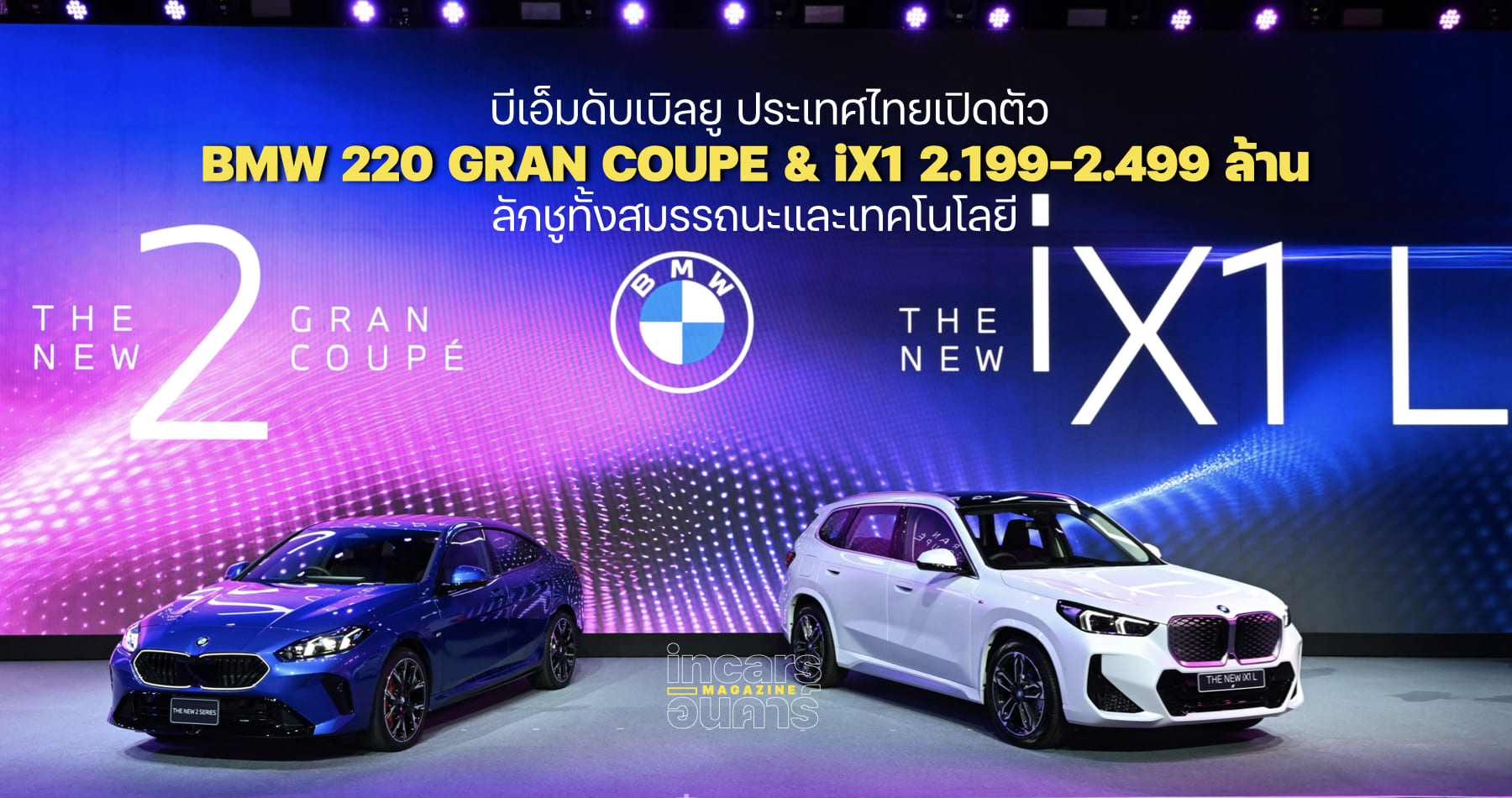 บีเอ็มดับเบิลยู ประเทศไทย พร้อมนำนักขับทั่วเมืองออกเดินทางสู่ประสบการณ์ใหม่ กับการเปิดตัวรถยนต์ใหม่ 2 รุ่นที่พร้อมตอบสนองจังหวะชีวิตที่หลากหลาย ได้แก่ บีเอ็มดับเบิลยู iX1 eDrive20L M Sport ครั้งแรกในประเทศไทยของ SAV ไฟฟ้ารุ่นฐานล้อยาว ที่ครบครันทั้งสไตล์และประโยชน์ใช้สอยในรูปลักษณ์สดใหม่ และบีเอ็มดับเบิลยู 220 Gran Coupé M Sport Pro รุ่นล่าสุดของตระกูลซีรีส์ 2 ที่เปี่ยมด้วยคาแรกเตอร์เฉพาะตัวในสไตล์สปอร์ต พร้อมยกระดับทั้งสมรรถนะและเทคโนโลยีแบบรอบคัน