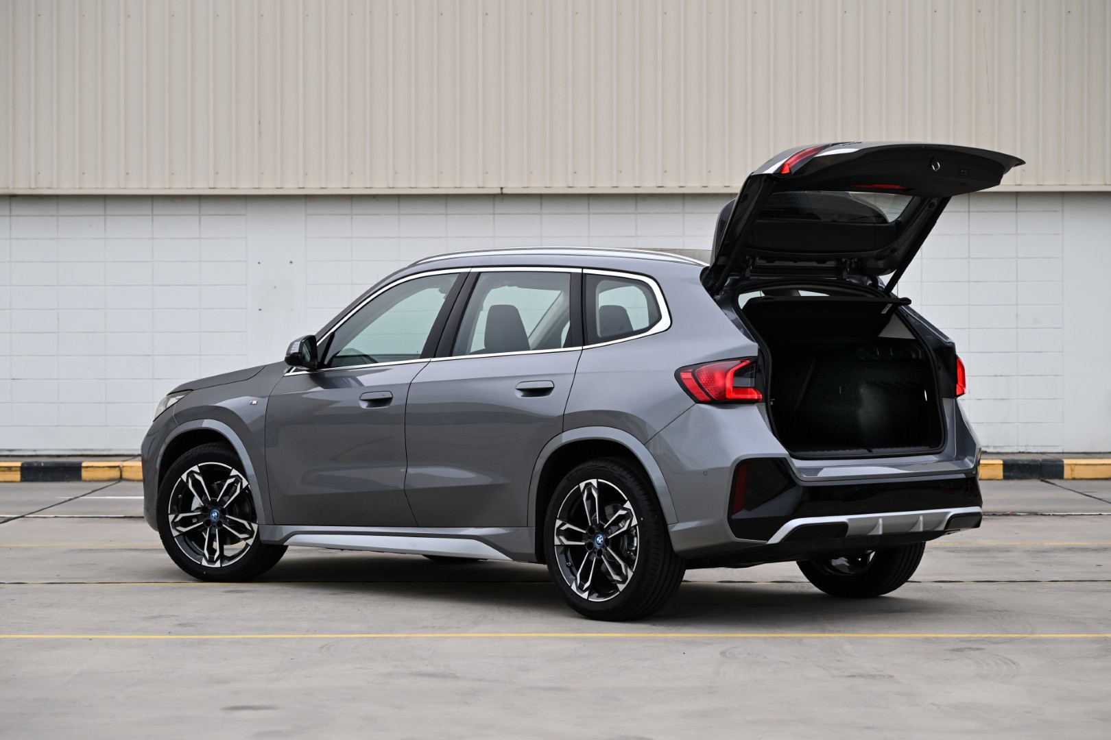 บีเอ็มดับเบิลยู iX1 eDrive20L M Sport ใหม่ ยกระดับการขับขี่สู่ระบบไฟฟ้าล้วน ด้วยดีไซน์ที่ได้รับการปรับแต่งต่างจากบีเอ็มดับเบิลยู X1 ในรุ่นมาตรฐาน และยังเพิ่มพื้นที่ภายในตัวรถให้กว้างขวางยิ่งขึ้น ด้วยตัวรถที่ยาวขึ้นเป็น 4,616 มิลลิเมตร และฐานล้อยาว 2,800 มิลลิเมตร หรือเท่ากับตัวรถยาวกว่า X1 รุ่นมาตรฐาน 116 มิลลิเมตร และฐานล้อยาวขึ้น 110 มิลลิเมตร ขนาดตัวรถที่เพิ่มขึ้นนี้ ผสมผสานกับบุคลิกที่บึกบึนและแข็งแกร่งในแบบของ SAV ได้อย่างลงตัว ทั้งยังโดดเด่นเตะตากว่าที่เคยด้วยกระจังหน้าแบบปิดโฉมใหม่ในทรงสามมิติ เข้าชุดกับไฟหน้า Adaptive LED ที่ทอดยาวไปยังด้านข้างของตัวรถ ส่วนเส้นสายด้านข้างตัวถัง ให้อารมณ์ความสปอร์ตและดุดันตลอดคัน ก่อนเติมความหรูด้วยชุดแต่ง M Sport ที่รวมถึงส่วนกรอบหน้าต่าง high-gloss Shadowline ที่เงาวับ จับสายตาได้ไม่แพ้ราวหลังคาอลูมิเนียมผิวด้านที่ทอดยาวอยู่ด้านบน และล้ออัลลอยขนาด 19 นิ้วในดีไซน์ Double-spoke Bicolourด้วยฐานล้อที่ยาวขึ้น บีเอ็มดับเบิลยู iX1 eDrive20L M Sport ใหม่ จึงมอบความสะดวกสบายที่เหนือกว่า ทั้งจากพื้นที่ที่กว้างขึ้น 81 มิลลิเมตรสำหรับการวางขา และ 107 มิลลิเมตรที่ระดับเข่า สำหรับผู้โดยสารเบาะหลัง รวมถึงตัวเบาะหลังที่บุโฟมนุ่มขึ้น พร้อมขยายความกว้างของตัวเบาะขึ้น 15 มิลลิเมตร ยกระดับความสบายในการนั่งได้ยิ่งขึ้น ขณะที่ระบบช่วงล่างก็ผ่านการปรับแต่งมาโดยเฉพาะเพื่อเพิ่มความนุ่มสบายบนทุกเส้นทาง เบาะหลังของ iX1 รุ่นฐานล้อยาวนี้ ยังคงแบ่งสัดส่วนเป็น 3 ตอนแบบ 40:20:40 เช่นเดิม และสามารถพับลงได้เพื่อขยายพื้นที่เก็บสัมภาระจาก 490 ลิตรเป็น 1,600 ลิตร ระบบ Comfort Access 2.0 ที่เพิ่มเข้ามาในรุ่นนี้ยังช่วยอำนวยความสะดวกเพิ่มเติมด้วยการปลดล็อกรถเมื่อเจ้าของรถเดินเข้ามาใกล้ และล็อกรถอัตโนมัติเมื่อเดินออกห่างตัวรถ เช่นเดียวกับระบบ BMW Digital Key Plus ที่เปิดโอกาสให้เจ้าของรถใช้สมาร์ทโฟนแทนกุญแจรถ และปลดล็อกรถอัตโนมัติได้เพียงนำสมาร์ทโฟนเข้ามาใกล้ ส่วนหลังคากระจก Panorama Glass Roof ซึ่งมีขนาดใหญ่ที่สุดในเซกเมนต์นี้ ก็เติมบรรยากาศให้ห้องโดยสารยิ่งรู้สึกโปร่งและโอ่อ่าขึ้นไปอีก