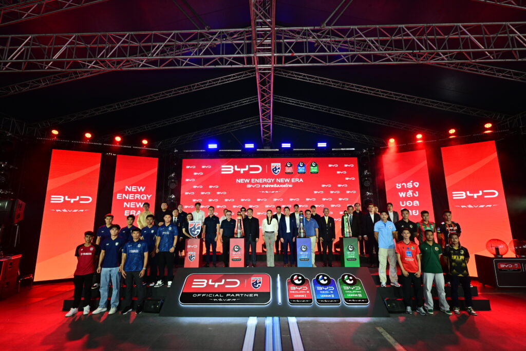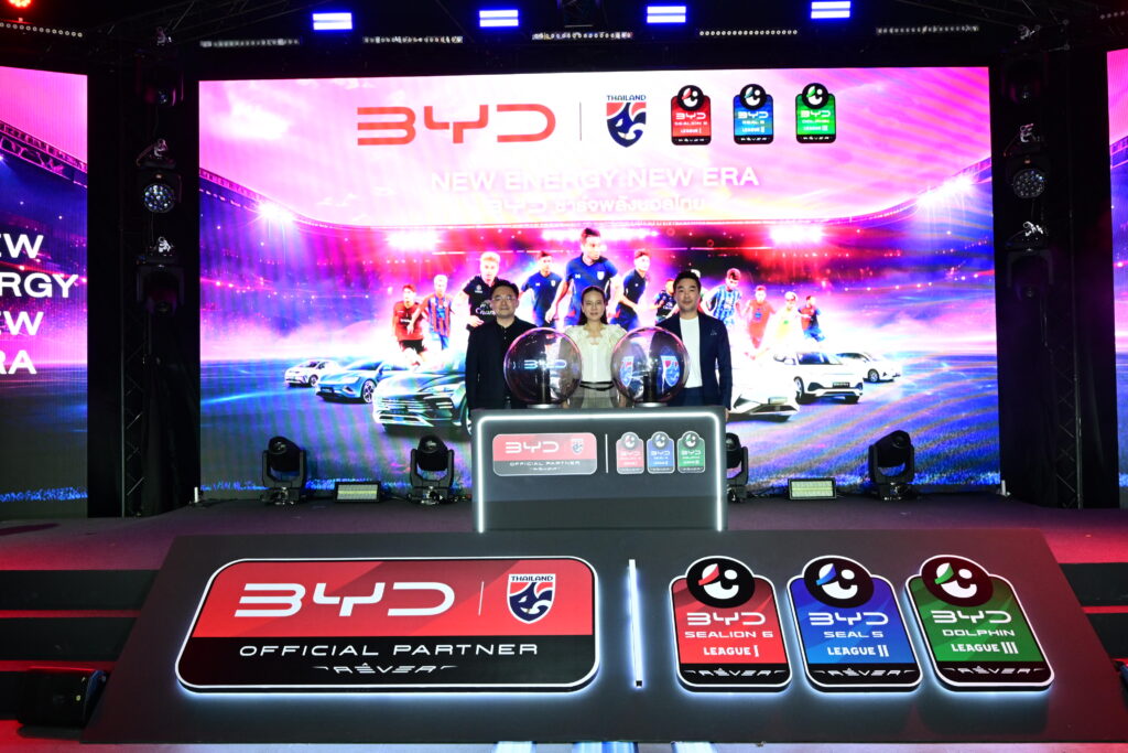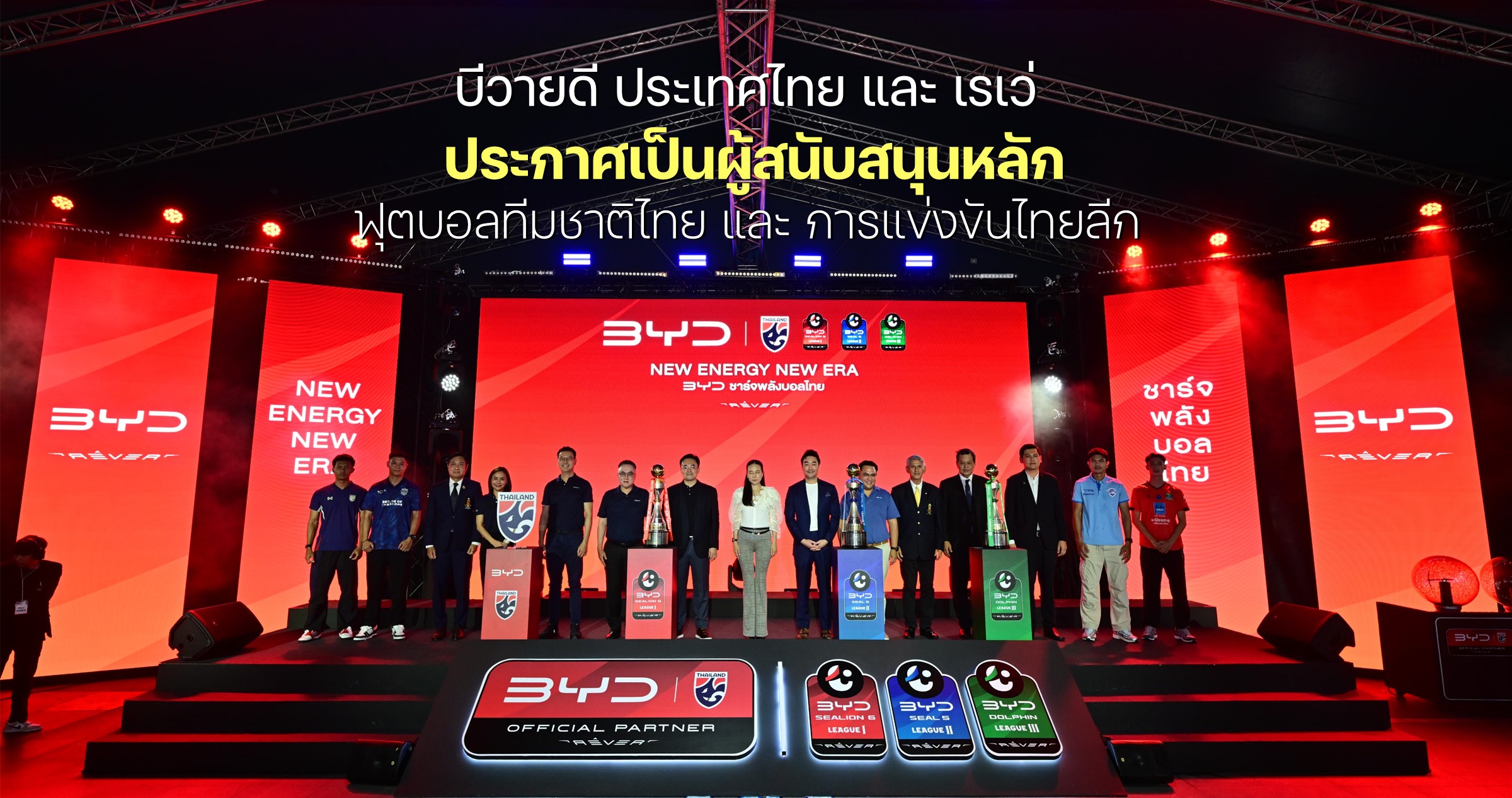 บริษัท บีวายดี (ประเทศไทย) จำกัด พร้อมด้วย บริษัท เรเว่ ออโตโมทีฟ จำกัด ผู้จัดจําหน่ายและให้บริการหลังการขายรถยนต์พลังงานใหม่ BYD และ DENZA อย่างเป็นทางการในประเทศไทย ภายใต้กลุ่มธุรกิจเรเว่ ร่วมประกาศเป็นผู้สนับสนุนหลักอย่างเป็นทางการ ของฟุตบอลทีมชาติไทย และ การแข่งขัน ‘ไทยลีก’ ภายใต้แนวคิด BYD ชาร์จพลังบอลไทย”  พร้อมชาร์จพลังให้ทุกภาคส่วน ตั้งแต่นักฟุตบอลไทย, โค้ช และกองเชียร์ มาร่วมกับขับเคลื่อนวงการบอลไทยสู่ยุคใหม่ไปด้วยกัน โดยในพิธีแถลงข่าวประกาศเป็นผู้สนับสนุน มีผู้บริหารจากหลายภาคส่วนเข้าร่วมพิธี ดังรายนามต่อไปนี้