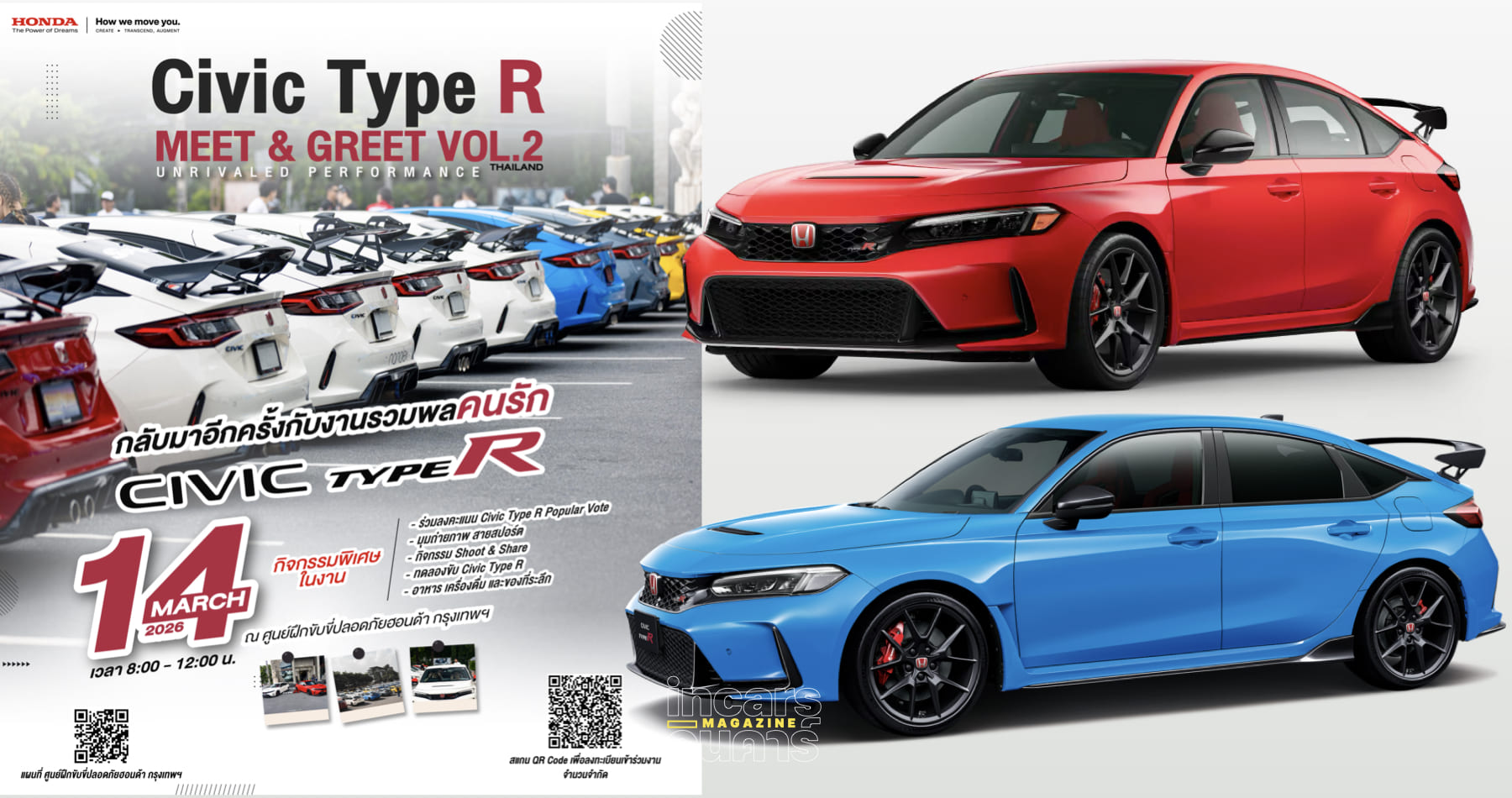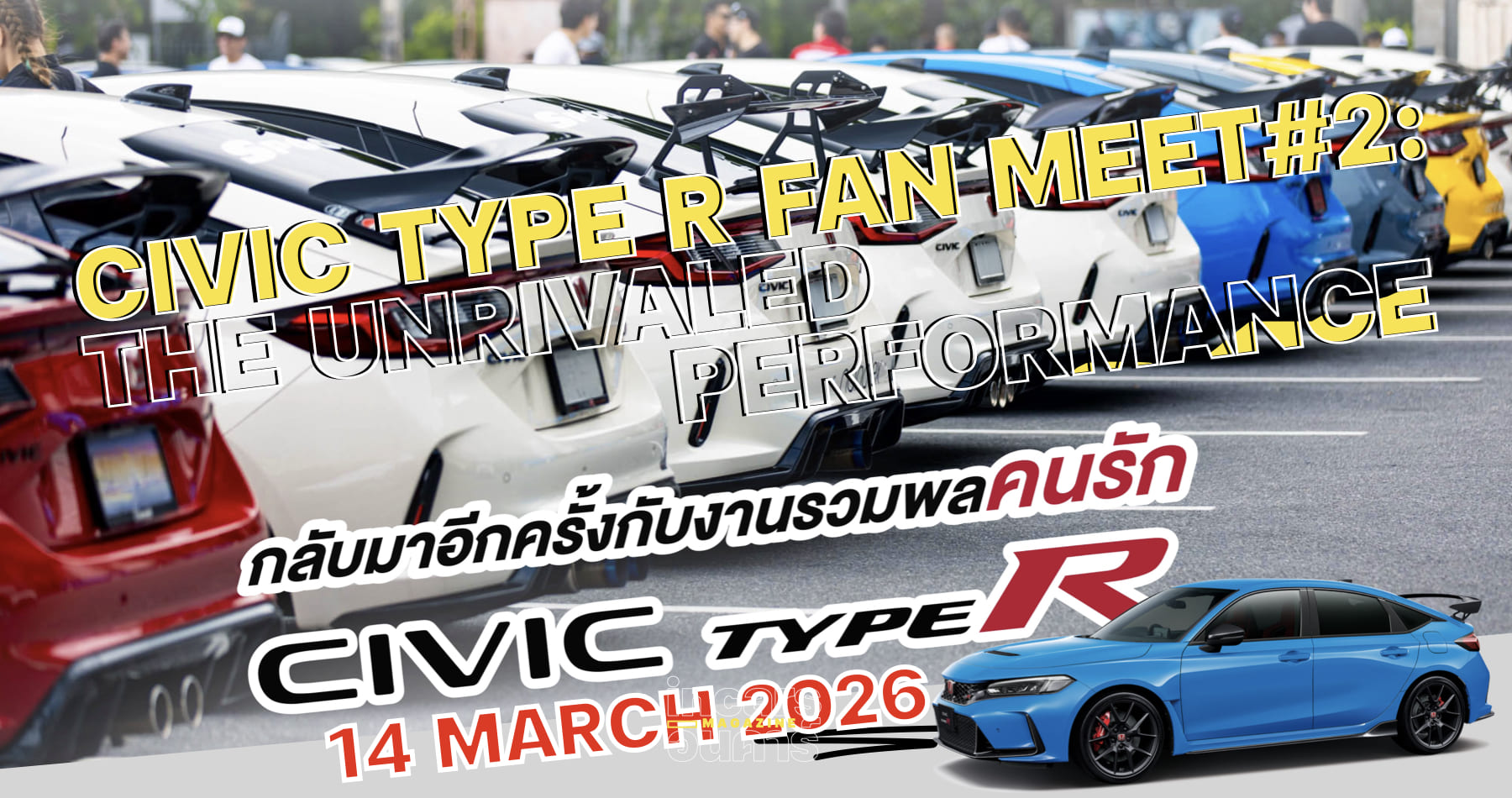 บริษัท ฮอนด้า ออโตโมบิล (ประเทศไทย) จำกัด จัดงานรวมตัวครั้งยิ่งใหญ่ของชาวแฟน ๆ สายสปอร์ตคนรัก Honda Civic Type R ในกิจกรรม Honda Civic Type R Fan Meet #2: The Unrivaled Performance ในวันเสาร์ที่ 14 มีนาคม 2569 ณ ศูนย์ฝึกขับขี่ปลอดภัยฮอนด้า ถนนรามคำแหง พร้อมเปิดรับสมัคร ผู้ที่สนใจเข้าร่วมกิจกรรมโดยลงทะเบียนผ่าน QR Code ในภาพผ่านช่องทาง Facebook: Honda Thailand ตั้งแต่วันที่ 24 กุมภาพันธ์ – 5 มีนาคม 2569 สิทธิ์มีจำนวนจำกัด