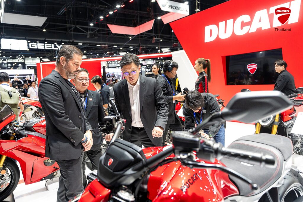 ด้าน คุณมาโค่ บิออนดิ รองประธานฝ่ายขายและการตลาดของดูคาติ ประจำตลาดเอเชียแปซิฟิก กล่าวว่า “ประเทศไทยคือหนึ่งในตลาดสำคัญของดูคาติ โดยมีชุมชนแฟนดูคาติที่แข็งแรงและมากด้วยพลังความหลงใหล ไลน์อัปใหม่ทั้ง 3 รุ่น รวมถึงรุ่นลิมิเต็ดที่นำมาเปิดตัวในงานนี้ สะท้อนทิศทางใหม่ของแบรนด์ที่ให้ความสำคัญทั้งด้านดีไซน์คุณภาพระดับสูง และเครื่องยนต์ที่ถ่ายทอดบุคลิกของดูคาติอย่างชัดเจน เราต้องการมอบประสบการณ์ที่ดีที่สุด ให้ผู้ที่กำลังมองหารถจักรยานยนต์พรีเมียมที่มีเอกลักษณ์เฉพาะตัว พร้อมข้อเสนอที่ดีที่สุดแห่งปี เพื่อเป็นการเฉลิมฉลองความสำเร็จระดับโลกของดูคาติ”