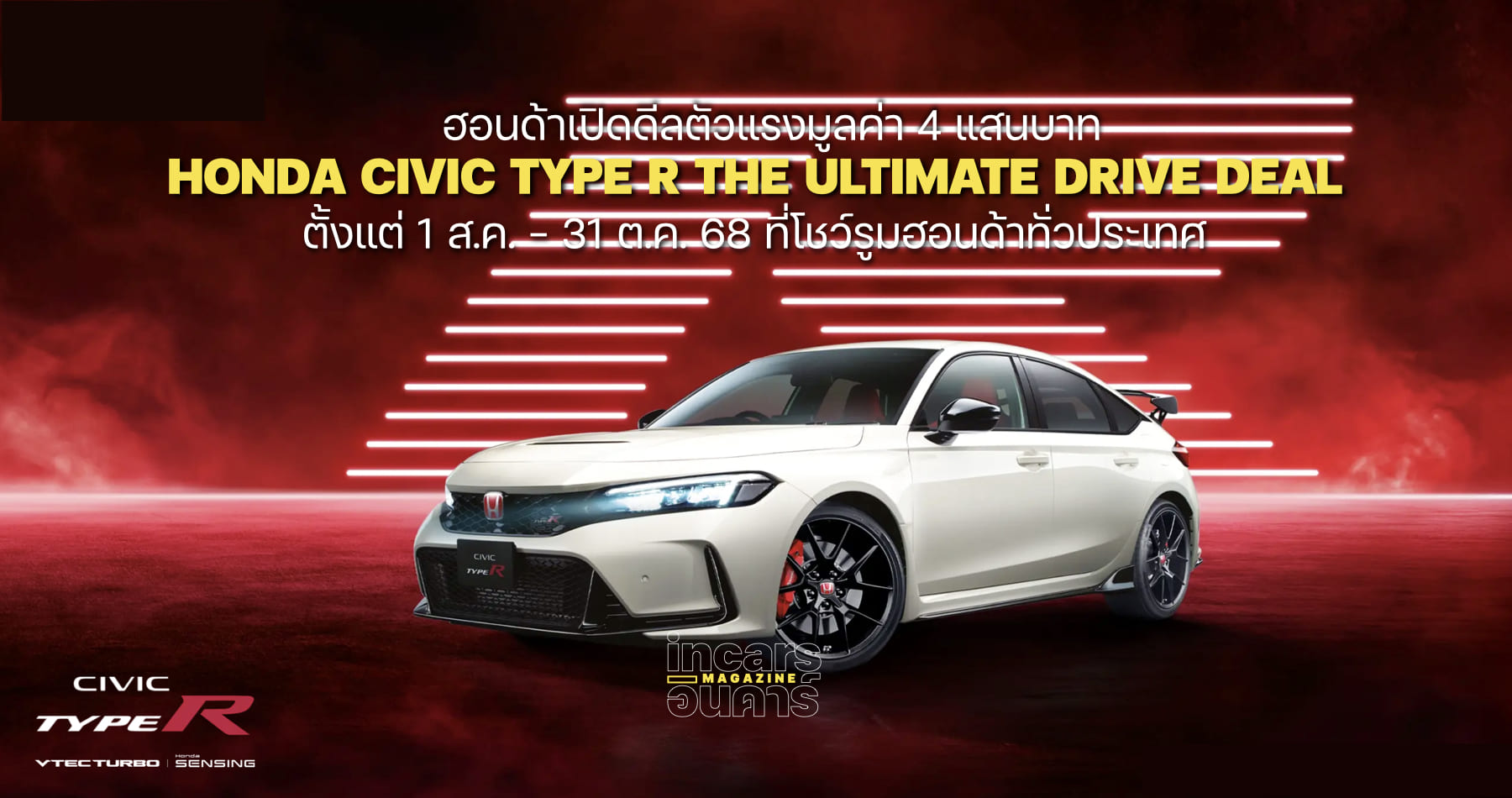 บริษัท ฮอนด้า ออโตโมบิล (ประเทศไทย) จำกัด ส่งดีลแรงเต็มสปีด เอาใจแแฟน ๆ สายสปอร์ตกับแคมเปญ “The Ultimate Drive Deal” ให้คุณเป็นเจ้าของ ฮอนด้า ซีวิค ไทป์ อาร์ (Civic Type R) ที่สุดแห่งยนตรกรรมความสปอร์ต กับข้อเสนอสุดพิเศษรวมมูลค่า 400,000 บาท เมื่อจองและรับรถระหว่างวันที่ 1 สิงหาคม 2568 – 31 ตุลาคม 2568