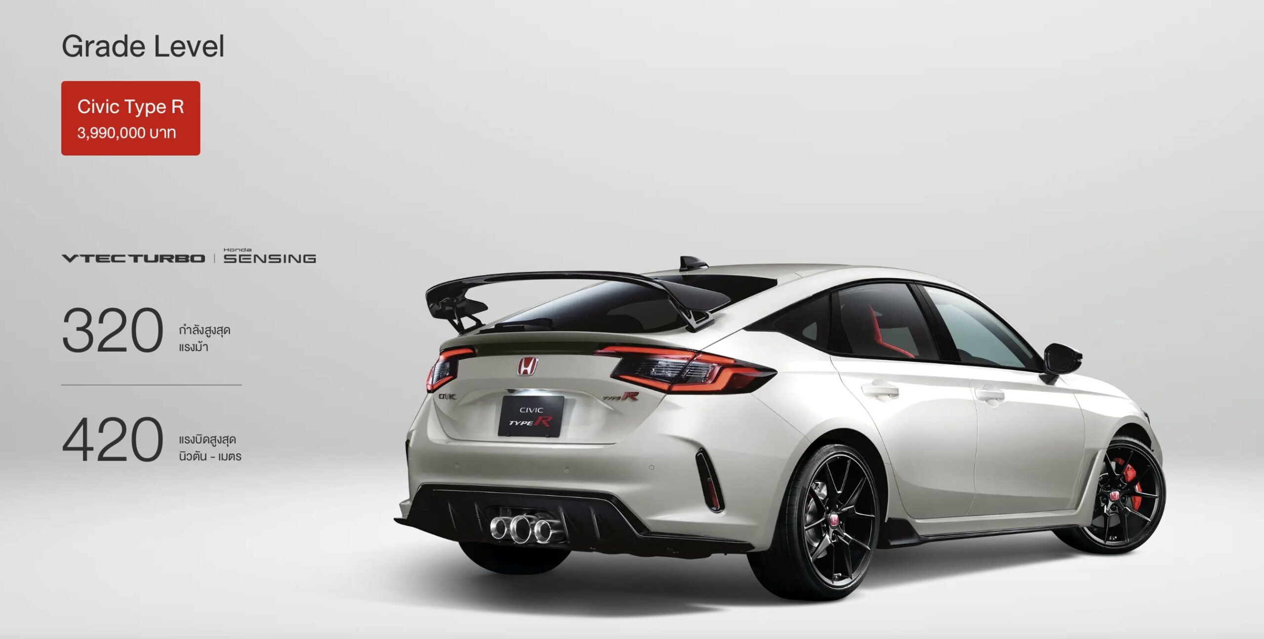 ฮอนด้า ซีวิค ไทป์ อาร์ (Civic Type R) ที่สุดแห่งยนตรกรรมสปอร์ตที่ได้รับการออกแบบอย่างเหนือระดับทั้งภายนอกและภายใน สะท้อนความสปอร์ตโดดเด่นเฉพาะตัวในทุกเส้นทาง และสะท้อนตัวตนได้ทุกไลฟ์สไตล์การใช้ชีวิต มาพร้อมประสบการณ์การขับขี่สนุกสุดเร้าใจกับขุมพลังเทอร์โบ แรงเร้าใจกับเครื่องยนต์ Direct Injection DOHC VTEC TURBO ขนาด 2.0 ลิตร 4 สูบ 16 วาล์ว ได้รับการพัฒนามาสำหรับ ฮอนด้า ซีวิค ไทป์ อาร์ โดยเฉพาะ มอบกำลังสูงสุด 320 แรงม้า แรงบิดสูงสุด 420 นิวตัน-เมตร ที่ทำงานร่วมกับเกียร์ธรรมดา 6 สปีด มั่นใจในทุกการขับขี่ด้วยเทคโนโลยีควา ปลอดภัยอัจฉริยะ ฮอนด้า เซนส์ซิ่ง (Honda SENSING) และเทคโนโลยีเพื่อความปลอดภัยอื่น ๆ ครบครัน พร้อมจำหน่ายในราคา 3,990,000 บาท โดยมีสีภายนอกทั้งหมด 5 สี ได้แก่ สีดำ คริสตัล (มุก) สีเทาโซนิค (มุก) สีแดงแรลลี่ สีขาวแชมเปียนชิป และสีน้ำเงินเรซซิง (มุก) รายละเอียดเพิ่มเติมเกี่ยวกับ ฮอนด้า ซีวิค ไทป์ อาร์ https://www.honda.co.th/civictyper