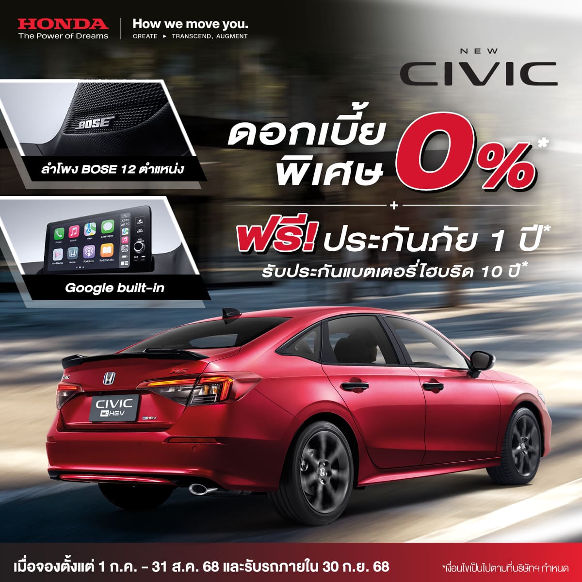 *เฉพาะรถยนต์รุ่นที่ร่วมรายการ ดอกเบี้ยและสิทธิพิเศษอาจแตกต่างกันในแต่ละรุ่น เงื่อนไขเป็นไปตามที่บริษัท ฮอนด้า ออโตโมบิล (ประเทศไทย) จำกัด กำหนด สามารถสอบถามรายละเอียดเพิ่มเติมได้กับที่ปรึกษาการขายโชว์รูมฮอนด้าทั่วประเทศ