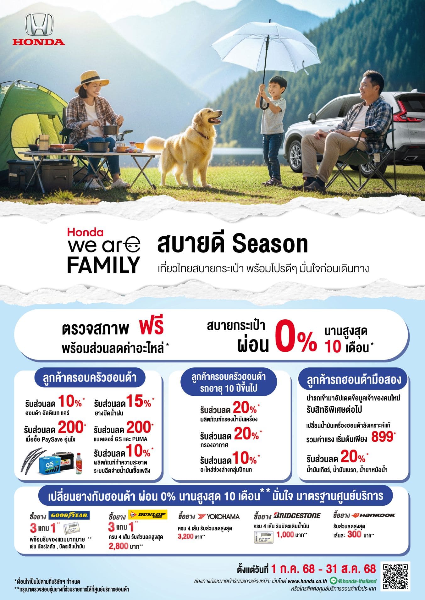 ***ระยะเวลาแคมเปญ ‘สบายดี Season บริการหลังการขาย ผ่อนสบาย 0%’ ตั้งแต่วันที่ 1 กรกฎาคม 2568 – 31 สิงหาคม 2568