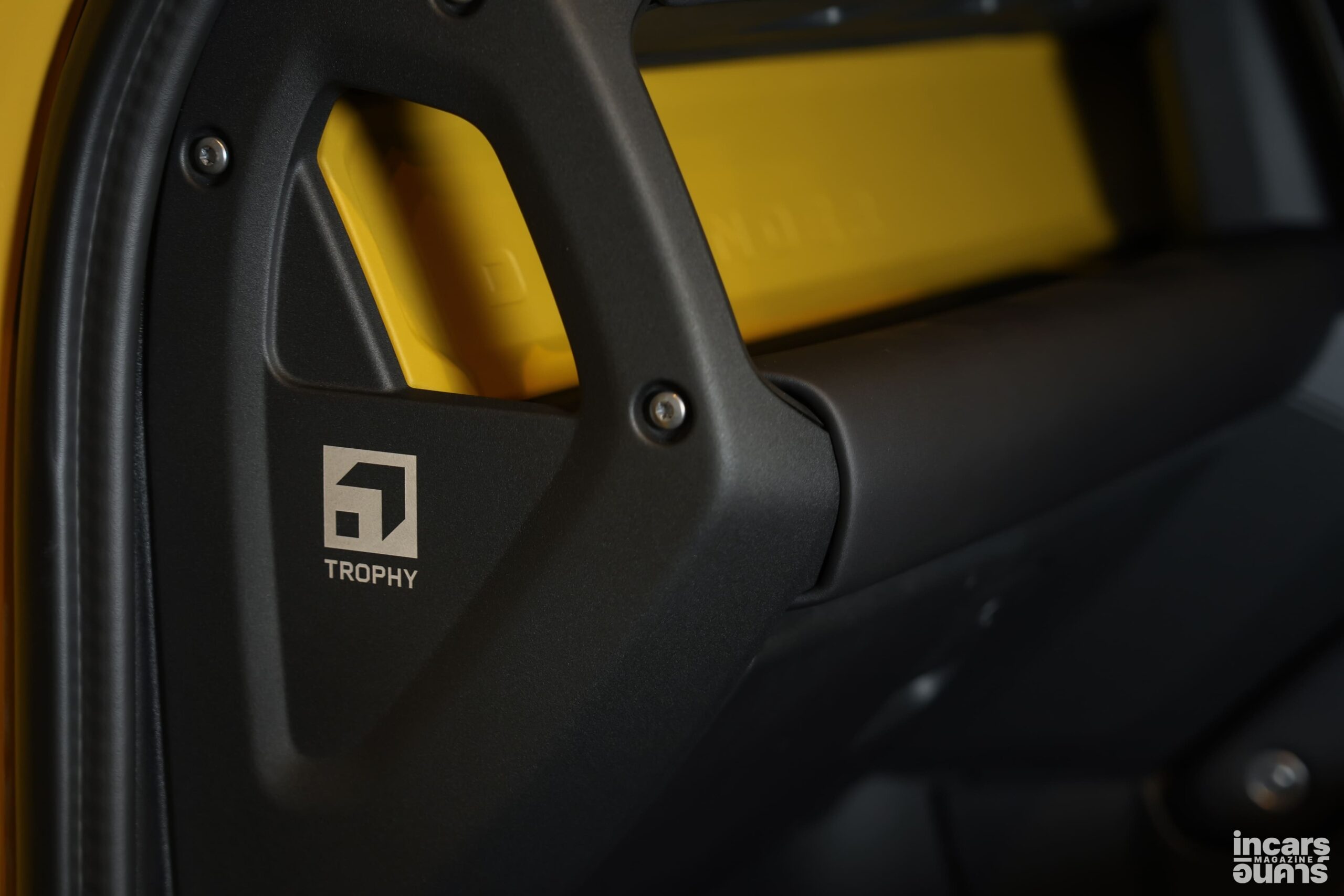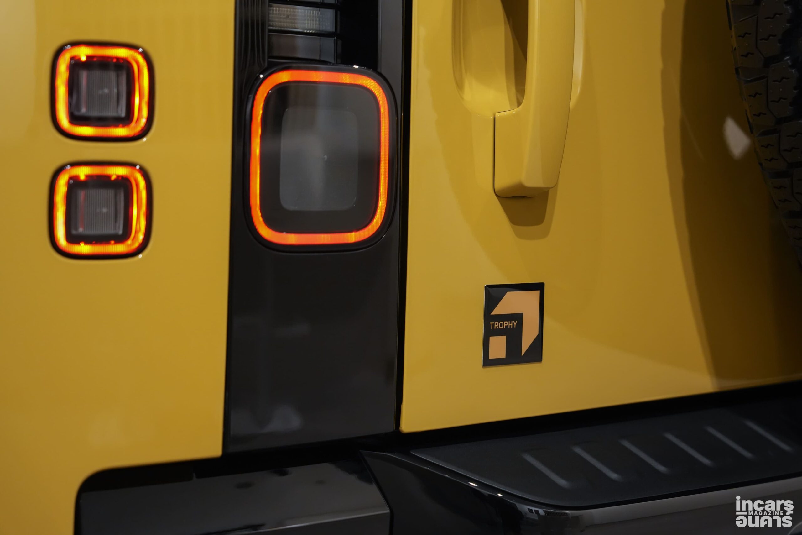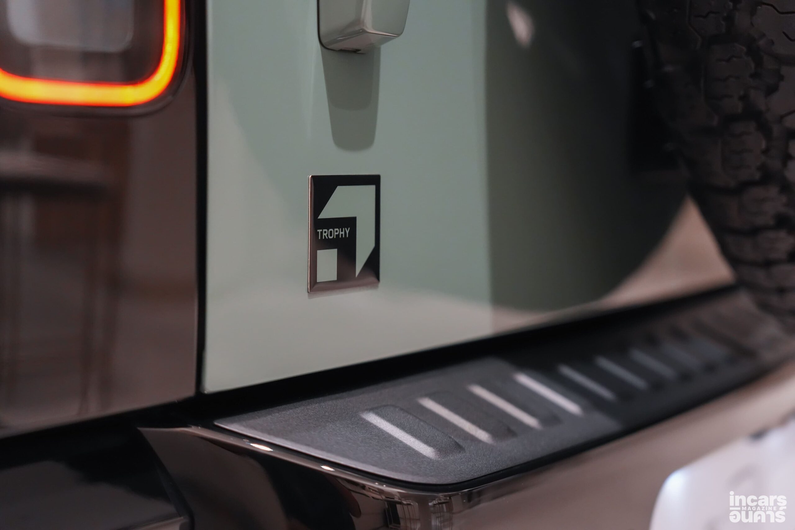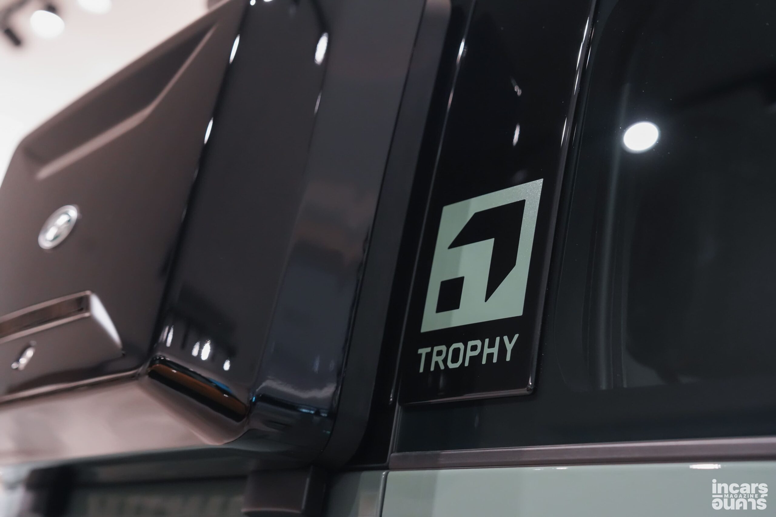 ตัวถังภายนอกตกแต่งด้วยสีดำเงา (Gloss Black) ในจุดสำคัญ อาทิ ฝากระโปรงหน้า ชายตัวถังด้านล่าง และคาลิปเปอร์เบรก เพื่อเสริมภาพลักษณ์ที่ดุดันและโดดเด่นยิ่งขึ้น รวมถึงห่วงลากด้านหลังสีดำเงา ซึ่งสะท้อนถึงสมรรถนะ และความพร้อมสำหรับการใช้งานในเส้นทางสมบุกสมบัน นอกจากนี้ ยังตกแต่งด้วยสติกเกอร์ดีคอล Trophy บนฝากระโปรงหน้า กราฟิกเสา C และตราสัญลักษณ์ Trophy บริเวณด้านหลัง ช่วยขับเน้นความเป็นรุ่นพิเศษได้อย่างชัดเจน เพื่อรองรับการขับขี่แบบออฟโรดที่ท้าทาย เสริมความดุดันด้วยล้ออัลลอยดีไซน์ใหม่ขนาด 20 นิ้ว สีดำเงา จับคู่กับยางออลเทอร์เรน (All-Terrain Tires) ที่ให้การยึดเกาะถนนอย่างเต็มสมรรถนะ พร้อมแผ่นกันรอยด้านท้ายรถสีเข้ม แผงป้องกันซุ้มล้อสีดำเงาและแผ่นกันกระแทกใต้ท้องรถด้านหน้าสีดำ