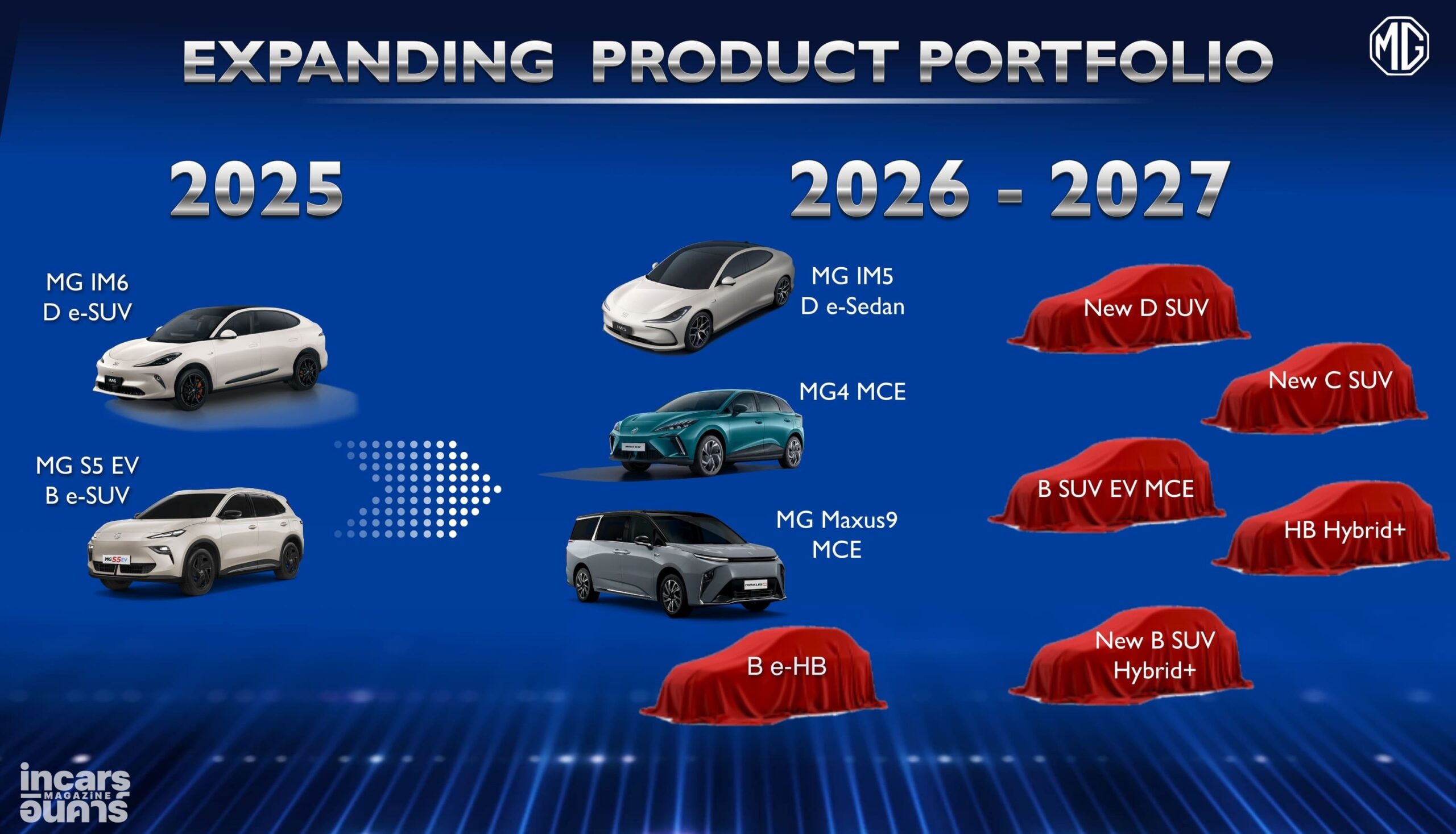 ภายใต้กลยุทธ์ “Dual Track” เอ็มจี เดินหน้าพัฒนาผลิตภัณฑ์ทั้งกลุ่มรถยนต์เครื่องยนต์สันดาป รถยนต์ไฮบริด และรถยนต์ไฟฟ้า ควบคู่กันอย่างชัดเจน พร้อมเปิดตัวรถใหม่อย่างต่อเนื่องในแต่ละไตรมาส เพื่อสร้างความสดใหม่ให้กับตลาด พร้อมรักษาความต่อเนื่องของไลน์อัปสินค้า และทำให้ผลิตภัณฑ์ของ เอ็มจี ตอบโจทย์ความต้องการของผู้บริโภคครอบคลุมในทุกเซกเมนต์ รวมถึงการนำ “เทคโนโลยีอัจฉริยะ” มาเป็นแกนหลักในการพัฒนาผลิตภัณฑ์ เพื่อสร้างความแตกต่างและยกระดับมาตรฐานตลาดรถยนต์ไทย ในปี 2026 เอ็มจี มีแผนขยายพอร์ตโฟลิโอรถยนต์ไฟฟ้าอย่างชัดเจน เริ่มตั้งแต่งานมอเตอร์โชว์ ด้วยการเปิดตัว MG IM5 ในกลุ่มพรีเมียมอีวี พร้อมด้วย NEW MG MAXUS 9 MCE ในกลุ่ม e-MPV และ NEW MG4 ELECTRIC MINORCHANGE เพื่อเสริมความแข็งแกร่งให้ไลน์อัปยอดนิยมของแบรนด์