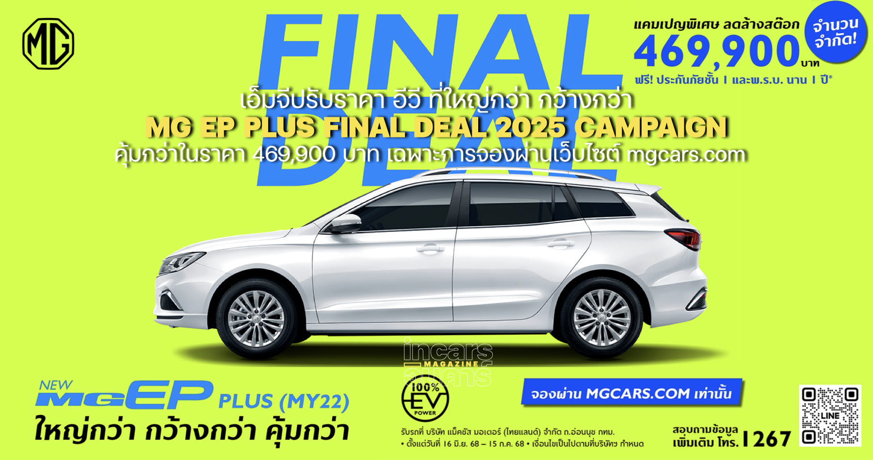 เอ็มจี เปิดแคมเปญสุดพิเศษเขย่าตลาดอีวีครึ่งปีหลัง ให้ลูกค้าสามารถเป็นเจ้าของ MG EP PLUS รถยนต์ไฟฟ้า สเตชั่นแวกอนรุ่นยอดนิยม ที่มาพร้อมจุดเด่นของการเป็นอีวีที่กว้างขวาง นั่งสบาย ขนได้ทั้งคนและของ ในราคาที่พิเศษกว่าครั้งไหน ๆ เพียง 469,900 บาท พร้อมรับหลากสิทธิประโยชน์ตอกย้ำความคุ้มค่า โดยจำหน่ายในจำนวนจำกัด และสงวนสิทธิ์เฉพาะการจองผ่านเว็บไซต์ mgcars.com ตั้งแต่วันที่ 16 มิถุนายน – 15 กรกฎาคม 2568 เท่านั้น พร้อมข้อเสนอพิเศษ