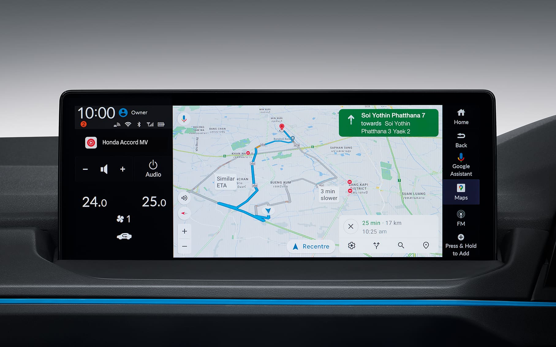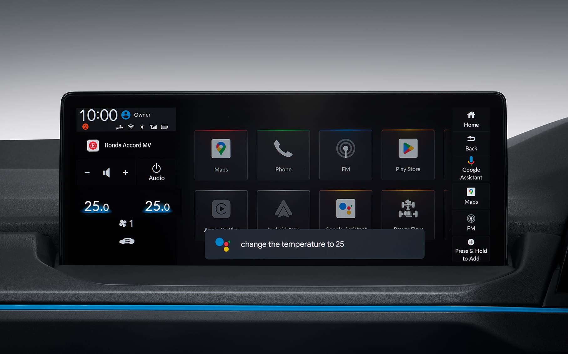 - ฮอนด้า แอคคอร์ด อี:เอชอีวี ใหม่ มาพร้อมแอปและบริการของ Google ที่ติดตั้งมาในตัว อย่าง Google Assistant, Google Maps และแอปอื่น ๆ อีกมากมายจาก Google Play ในรถยนต์ของคุณเพื่อประสบการณ์การขับขี่แบบมีผู้ช่วยที่ราบรื่นและปรับเปลี่ยนได้ในแบบของคุณ ประกอบด้วย