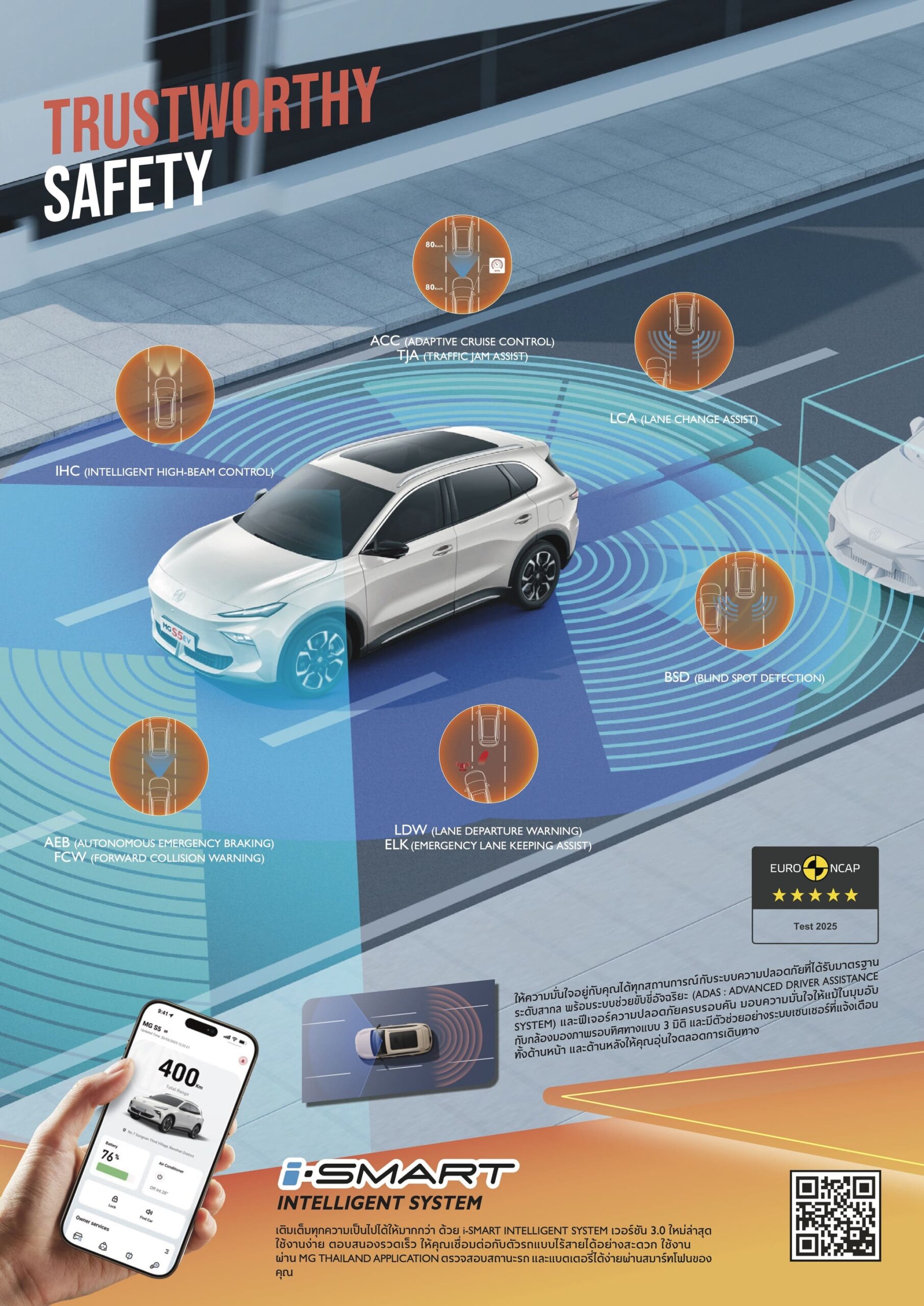 ทั้งยังเสริมความมั่นใจในการขับขี่ด้วยระบบ One Pedal ที่ช่วยควบคุมความเร็วได้ง่ายขึ้น ยิ่งไปกว่านั้น NEW MG S5 EV ยังได้รับการรับรองความปลอดภัยระดับ 5 ดาวจาก Euro NCAP ซึ่งเป็นหนึ่งในมาตรฐานความปลอดภัยที่เข้มงวดและได้รับการยอมรับมากที่สุดในยุโรป ด้วยจุดเด่น “ขับสนุก วิ่งไกล ชาร์จไว นั่งสบาย พร้อม Lifetime Warranty” ทำให้ NEW MG S5 EV กลายเป็น e-SUV ขวัญใจมหาชนที่ตอบโจทย์ครบทุกด้าน ทั้งสมรรถนะ การใช้งาน และความคุ้มค่า เสริมความมั่นใจด้วยการรับประกันแบตเตอรี่แรงเคลื่อนสูง ชุดมอเตอร์ขับเคลื่อน และชุดควบคุมตลอดอายุการใช้งาน ซึ่งถือเป็นอีกหนึ่งคำมั่นจาก  เอ็มจี ในการดูแลลูกค้าอย่างต่อเนื่องทั้งก่อนและหลังการขาย เพื่อส่งมอบ “ความมั่นใจ” ที่มาพร้อม “ความคุ้มค่า” ในรถคันเดียวอย่างแท้จริง