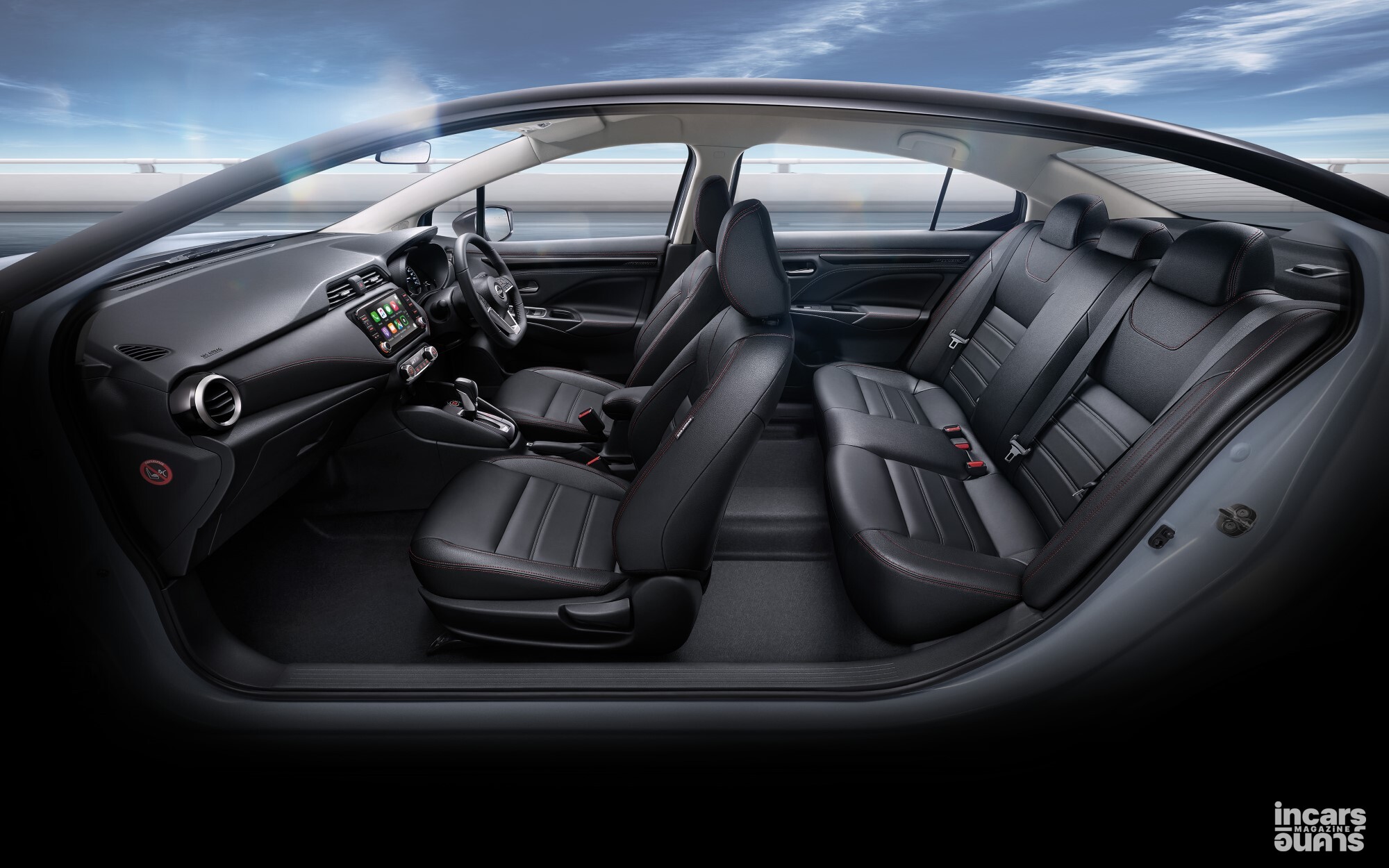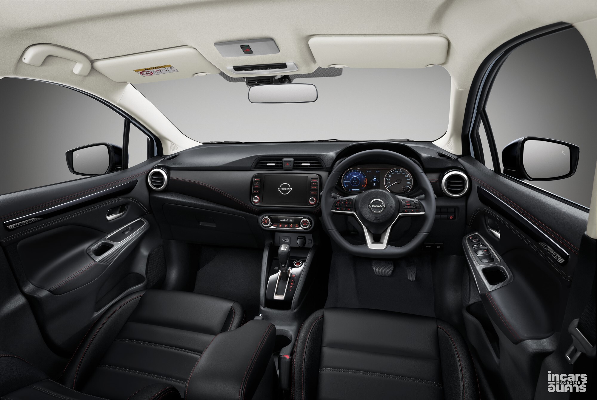 นิสสัน อัลเมร่า รุ่นปี 2026 มีรูปลักษณ์ที่ทันสมัย ปราดเปรียวยิ่งขึ้นด้วยกระจังหน้าแบบใหม่สีดำ กันชนด้านล่างทั้งหน้าและหลังสีดำ สำหรับในรุ่น VL สีทูโทนมีมือจับประตูสีดำเข้ากับหลังคาดำ รวมทั้งเพิ่มความเข้มสไตล์สปอร์ตในรุ่น V และ VL ด้วยชิ้นส่วนตกแต่งไฟหน้าสีดำ ภายในห้องโดยสาร ยกระดับดีไซน์และความสปอร์ตด้วยเบาะหุ้มผ้าสีดำตกแต่งด้วยผ้าสีน้ำเงินเข้มในรุ่น E และ EL ส่วนในรุ่น V และ VL เป็นเบาะหนังสีดำเดินตะเข็บสีส้ม เช่นเดียวกับที่คอนโซลหน้า แผงประตู และที่วางแขนด้านหน้า