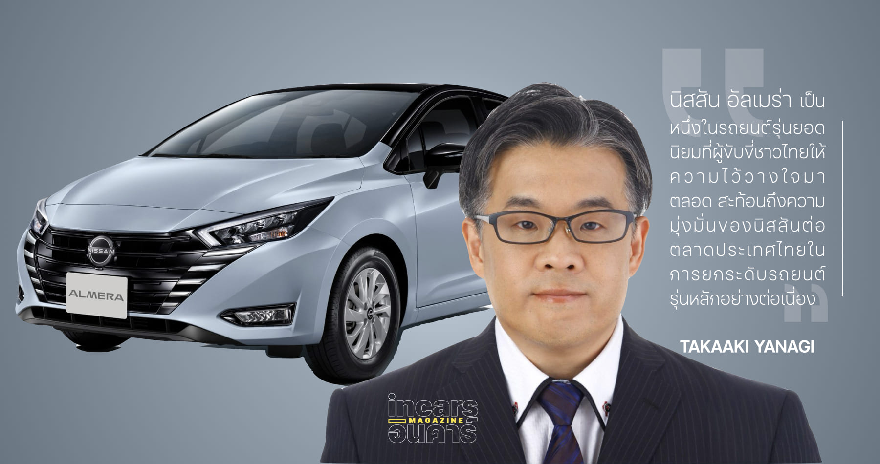 ทาคาอากิ ยานางิ รองประธานอาวุโส นิสสัน ประเทศไทย กล่าวว่า “นิสสัน อัลเมร่า เป็นหนึ่งในรถยนต์รุ่นยอดนิยมที่ผู้ขับขี่ชาวไทยให้ความไว้วางใจมาตลอด ด้วยเครื่องยนต์ที่ตอบสนองทันใจ ดีไซน์สปอร์ตสุดโดดเด่น ภายในกว้างขวาง ประโยชน์ใช้สอยครบครัน และเทคโนโลยีความปลอดภัยที่ตอบโจทย์ทุกการขับขี่ในชีวิตประจำวัน โดย นิสสัน อัลเมร่า รุ่นปี 2026 ได้ต่อยอดจุดเด่นเหล่านี้ผ่านการพัฒนาอย่างรอบด้าน สะท้อนถึงความมุ่งมั่นของนิสสันต่อตลาดประเทศไทยในการยกระดับรถยนต์รุ่นหลักอย่างต่อเนื่อง พร้อมสร้างความคึกคักให้กับตลาดรถยนต์อย่างสม่ำเสมอ”