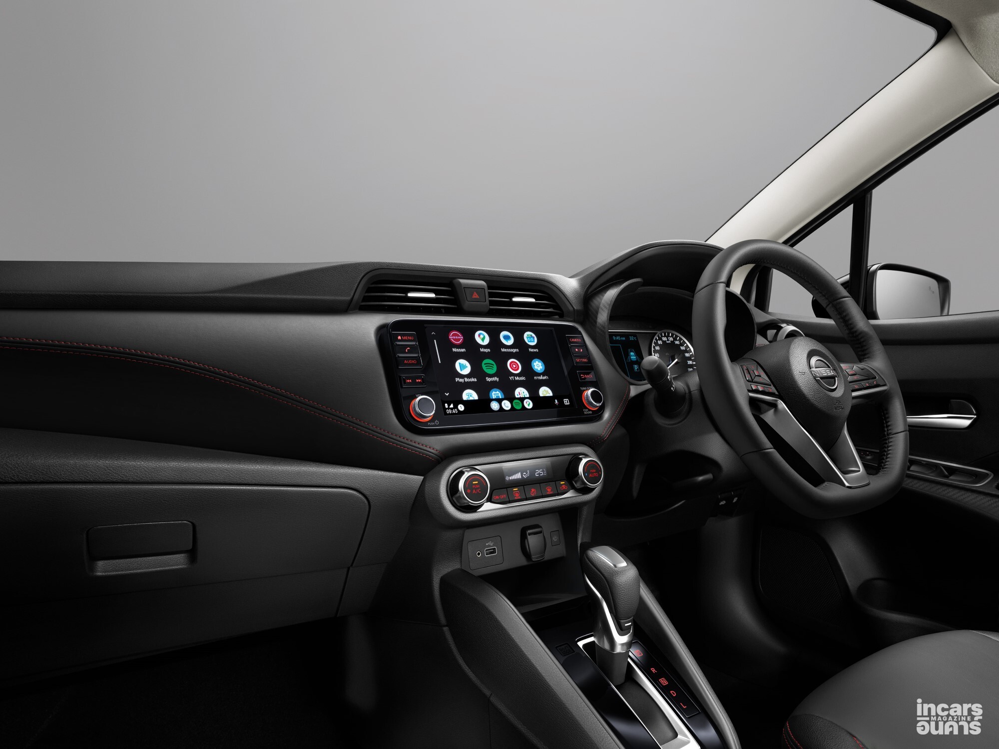 นิสสัน อัลเมร่า รุ่นปี 2026 มีรูปลักษณ์ที่ทันสมัย ปราดเปรียวยิ่งขึ้นด้วยกระจังหน้าแบบใหม่สีดำ กันชนด้านล่างทั้งหน้าและหลังสีดำ สำหรับในรุ่น VL สีทูโทนมีมือจับประตูสีดำเข้ากับหลังคาดำ รวมทั้งเพิ่มความเข้มสไตล์สปอร์ตในรุ่น V และ VL ด้วยชิ้นส่วนตกแต่งไฟหน้าสีดำ ภายในห้องโดยสาร ยกระดับดีไซน์และความสปอร์ตด้วยเบาะหุ้มผ้าสีดำตกแต่งด้วยผ้าสีน้ำเงินเข้มในรุ่น E และ EL ส่วนในรุ่น V และ VL เป็นเบาะหนังสีดำเดินตะเข็บสีส้ม เช่นเดียวกับที่คอนโซลหน้า แผงประตู และที่วางแขนด้านหน้า
