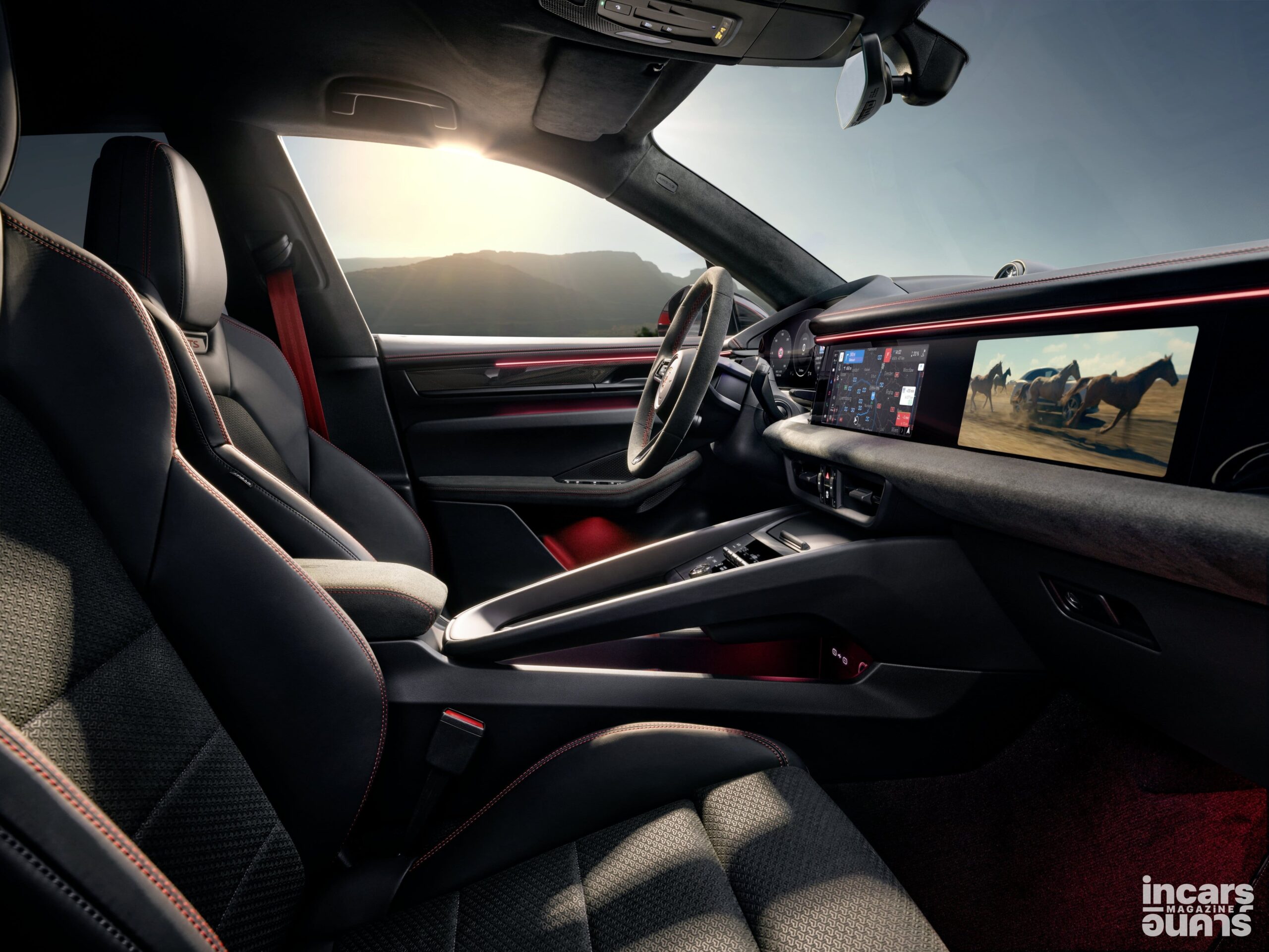 เพื่อถ่ายทอดความสปอร์ตจากภายนอกสู่ภายใน มาคันน์ จีทีเอส จะมาพร้อมห้องโดยสารที่ตกแต่งด้วยวัสดุ Race-Tex ผสานกับหนังเรียบสีดำ โดยวัสดุ Race-Tex จะนำมาใช้บนพวงมาลัยมัลติฟังก์ชันแบบ GT Sports ที่มาพร้อมระบบทำความร้อน ที่วางแขนบริเวณคอนโซลกลางและแผงประตู รวมถึงแดชบอร์ด นอกจากนี้ เบาะนั่งสปอร์ตแบบปรับได้ 18 ทิศทางยังมาพร้อมเบาะที่หุ้มด้วยวัสดุ Race-Tex ส่วนด้านข้างของเบาะและพนักพิงศีรษะที่ตกแต่งด้วยหนังเรียบเป็นครั้งแรกในมาคันน์ ไฟฟ้า ที่มาพร้อมกับแพ็คเกจตกแต่งภายในแบบ GTS Interior Package ซึ่งสามารถเลือกการตกแต่งภายในให้เข้ากับสีภายนอกของตัวรถได้ โดยมีให้เลือกทั้งหมด 3 เฉดสี ได้แก่ สี Carmine Red, สี Slate Grey Neo และ สี Lugano Blueโดยจะมีการตกแต่งด้วยตะเข็บด้ายสีตัดกันทั้งบนเบาะนั่ง พวงมาลัย แผงประตู ด้านบนของแผงหน้าปัด รวมถึงเข็มขัดนิรภัย และอักษร ‘GTS’ บนพนักพิงเบาะ และบนพวงมาลัยยังมีการตกแต่งด้วย ตราสัญลักษณ์ ‘GTS’ สีเดียวกับภายนอก รวมถึงในแพ็คเกจยังมี Carbon Interior Package ด้วยการตกแต่งคาร์บอนไฟเบอร์บนพวงมาลัย แผงหน้าปัด และแผงประตูอีกด้วยเอกลักษณ์ของจีทีเอส ได้ถ่ายทอดสู่ห้องโดยสารดิจิทัลของมาคันน์ จีทีเอส โดยภาพจำลองตัวรถแบบ 3 มิติ บนหน้าจอแสดงผลกลาง จะเป็นสีเดียวกับสีตัวถัง พร้อมกับชุดมาตรวัดที่มีการตกแต่งด้วยอักษร ‘GTS’ นอกจากนี้ ฟังก์ชันต่าง ๆ ของแพ็คเกจ Sport Chrono ได้ติดตั้งมาเป็นอุปกรณ์มาตรฐาน เช่น ระบบจับเวลาต่อรอบ การบันทึกข้อมูลเทเลเมทรี และการวิเคราะห์ช่วงเวลาในแต่ละเซกเตอร์ โดยสามารถใช้งานผ่านแอปพลิเคชันบนหน้าจอแสดงผลกลาง