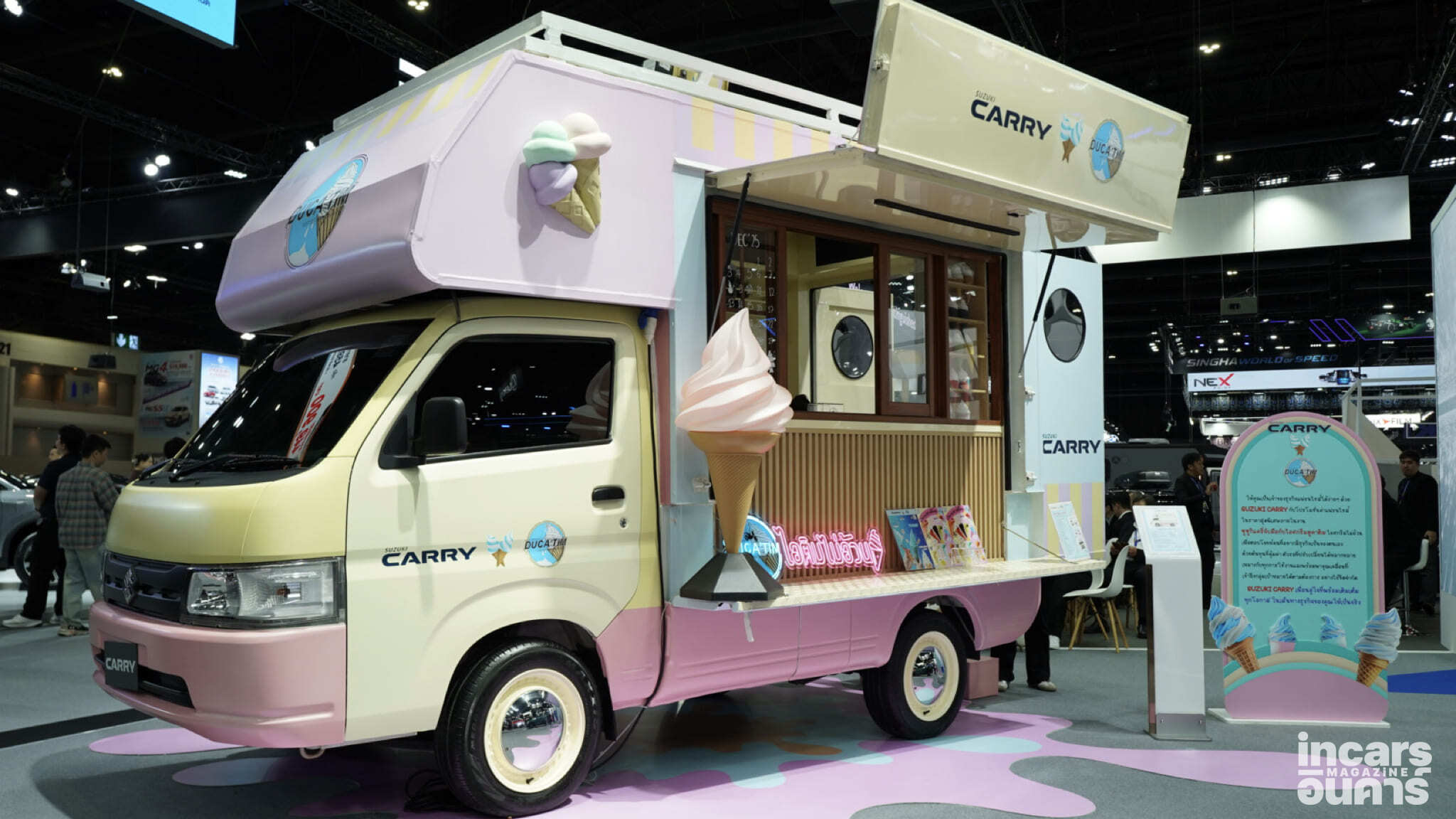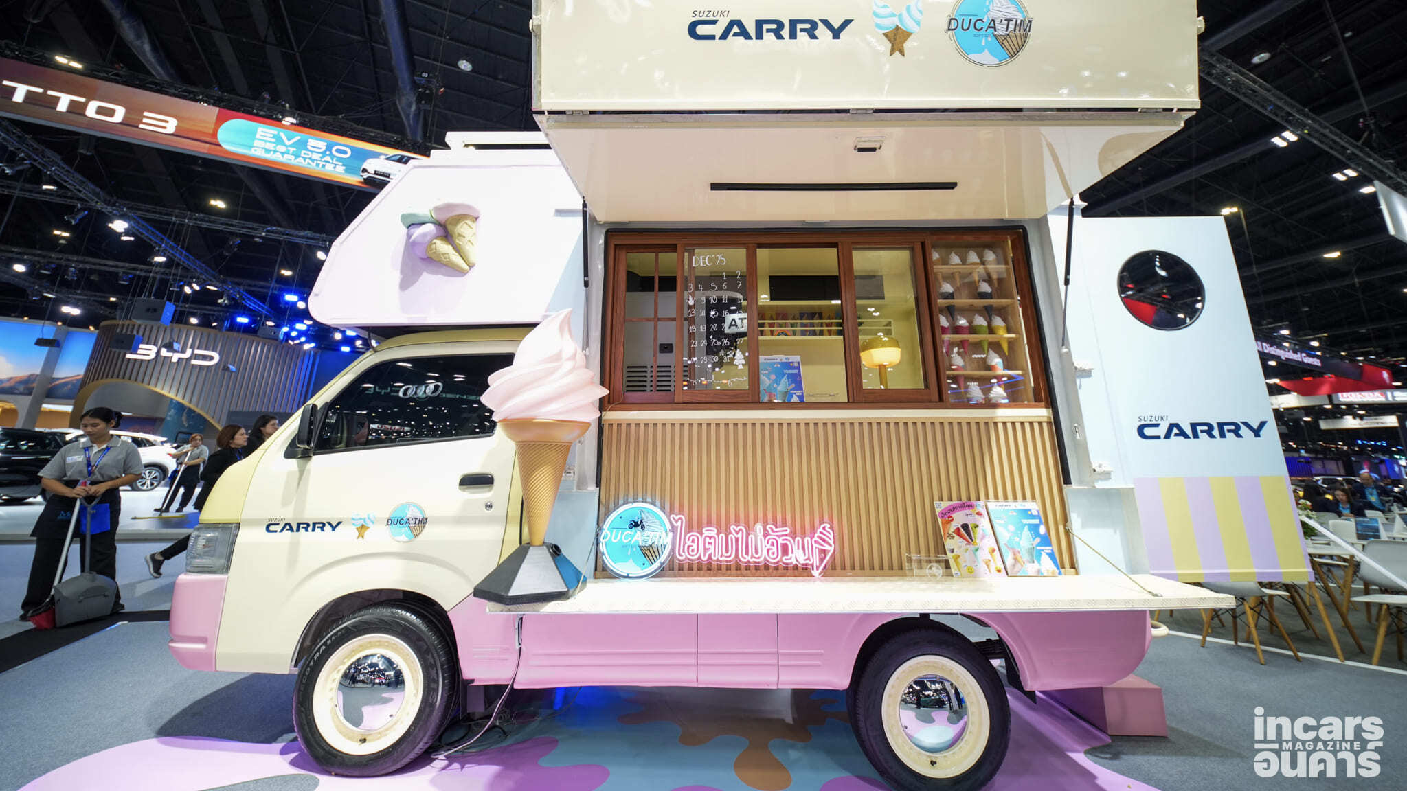 SUZUKI CARRY รถกระบะบรรทุกอเนกประสงค์ ที่ถูกออกแบบมาให้มีรูปลักษณ์ที่พร้อมจะนำไปดัดแปลงและพัฒนาต่อยอดให้เข้ากับทุกแนวทางของการดำเนินธุรกิจ จนเป็นที่ยอมรับในฐานะ Food Truck, Goods Truck และ Service Truck สามารถต่อยอดในการทำธุรกิจอื่นๆ เสมือนดั่งพาร์ทเนอร์คนสำคัญ ที่พร้อมจะสนับสนุนและร่วมขับเคลื่อนอยู่เคียงข้างผู้ใช้ด้วยความจริงใจ ราคาจำหน่ายเพียง 395,000 บาท โดยในงานนี้ ซูซูกิร่วมมือกับร้าน Duca’tim (ดูคาติม) แฟรนไชส์ไอศกรีม Soft Serve ชื่อดังคุณภาพพรีเมียม เพื่อตอกย้ำแนวคิด ‘Carry Your Dream’ สานฝันให้ธุรกิจเป็นจริงได้อย่างรวดเร็วและคุ้มค่า นำรถ SUZUKI CARRY มาดัดแปลงเป็น ‘รถไอศกรีมเคลื่อนที่ Duca’tim’ ที่ออกแบบมาอย่างลงตัวและครบวงจร รถคันนี้ไม่เพียงแต่โดดเด่นสะดุดตา แต่ยังมาพร้อมพื้นที่ใช้สอยและฟังก์ชันการใช้งานที่ครบครัน สำหรับอุปกรณ์จำหน่ายไอศกรีม ตลอดจนการจัดเก็บสินค้าได้อย่างลงตัวการจับคู่ในครั้งนี้ถือเป็นการมอบทางเลือกที่น่าสนใจให้กับนักลงทุนที่สนใจแฟรนไชส์ เนื่องจาก SUZUKI CARRY มีจุดเด่นด้านความทนทาน, ประหยัดน้ำมัน, และค่าบำรุงรักษาต่ำ ซึ่งช่วยลดต้นทุนการดำเนินงานในระยะยาว ผนวกกับชื่อเสียงของ Duca’tim ในด้านคุณภาพและรสชาติไอศกรีม ทำให้มั่นใจได้ว่าผู้ประกอบการสามารถเริ่มต้นธุรกิจได้อย่างมั่นคงและสามารถขยายฐานลูกค้าได้ในทุกพื้นที่