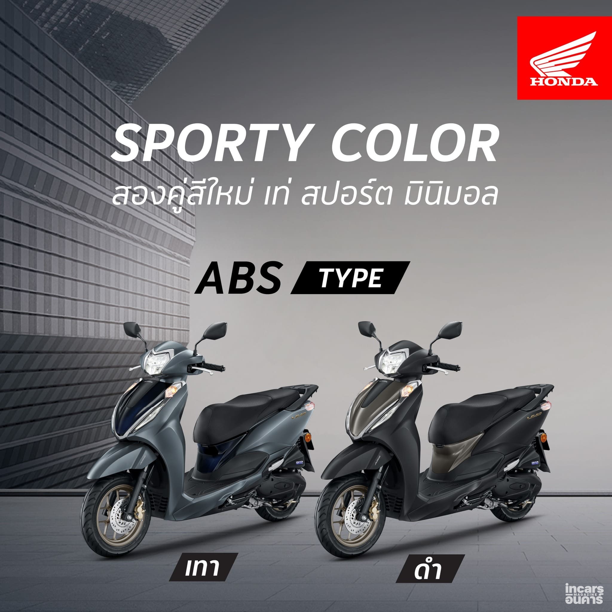 New Honda LEAD125 มาพร้อมคู่สีใหม่ให้ความเท่ผสานเข้ากับความมินิมอลอย่างลงตัว พร้อม Emblem สีทอง เพิ่มความพรีเมียม วางจำหน่ายทั้งหมด 2 รุ่น ได้แก่ รุ่น ABS สีดำ (Black) และ สีเทา (Grey) ในราคาแนะนำ 67,000 บาท ขณะที่ รุ่น CBS ได้แก่ สีขาว-ดำ (Black-White) และ สีดำ (Black) วางจำหน่ายในราคาแนะนำ 62,000 บาท สามารถสัมผัสรถจักรยานยนต์คันจริงและเลือกเป็นเจ้าของ New Honda LEAD125 ที่ผสานความสะดวกสบาย และความพรีเมียมได้อย่างลงตัว ได้แล้ววันนี้ที่ศูนย์ Honda Wing Center ทั่วประเทศ