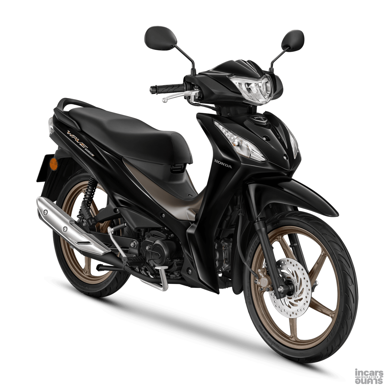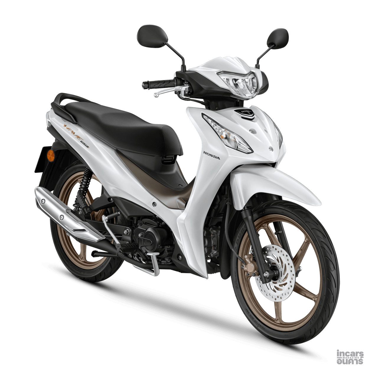 ปิดท้ายด้วย All New Honda Wave110 ปรับโฉมใหม่เพิ่มความทันสมัยยิ่งขึ้น โดดเด่นด้วยสีรถและโลโก้ Emblem สีคอปเปอร์ มาพร้อมไฟเลี้ยวดีไซน์ใหม่โฉบเฉี่ยว ไฟหน้า-ไฟท้ายแบบ LED เพิ่มความสะดวกสบายด้วยช่องเก็บของด้านหน้า ตะขอแขวนอเนกประสงค์ และ ช่องชาร์จ USB Type-C เสริมความปลอดภัยด้วยระบบ Combined Brake System (CBS) พร้อมยกระดับทั้งความปลอดภัยและความสะดวกสบาย มาพร้อมขุมพลัง Honda Smart Engine ขนาด 110 ซีซี ระบบหัวฉีด PGM-FI ที่แข็งแรง ทนทาน คล่องตัว และประหยัดน้ำมันด้วยอัตราการประหยัดน้ำมันสูงสุดถึง 71.4 กม./ลิตร All New Honda Wave110 พร้อมวางจำหน่ายในรุ่นล้อแม็ก Special Edition 2 สี ได้แก่ สีขาว–น้ำตาล และ สีดำ–น้ำตาล ราคาแนะนำที่ 48,800 บาท และรุ่นล้อแม็กมีให้เลือก 3 สี ได้แก่ สีเทา–น้ำตาล, สีน้ำเงิน และสีแดง ราคาแนะนำที่ 48,300 บาท รุ่นล้อซี่ลวด สตาร์ทมือ ดิสก์เบรก มีให้เลือกทั้งหมด 3 สี ได้แก่ สีเทา–ดำ, สีน้ำเงิน–ดำ และสีดำ–น้ำตาล ราคาแนะนำที่ 46,300 บาท รุ่นล้อซี่ลวด สตาร์ทเท้า ดรัมเบรก วางจำหน่ายใน สีดำ ราคาแนะนำที่ 39,000 บาท