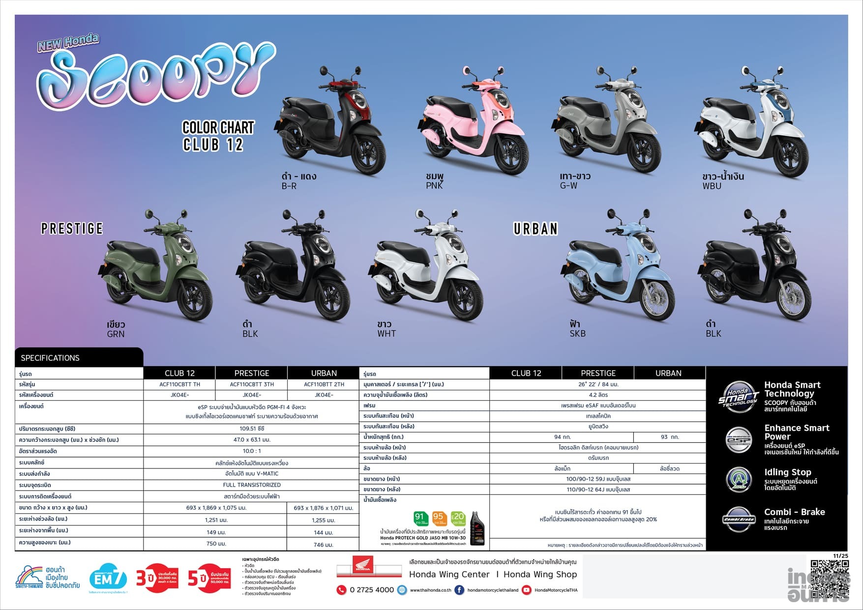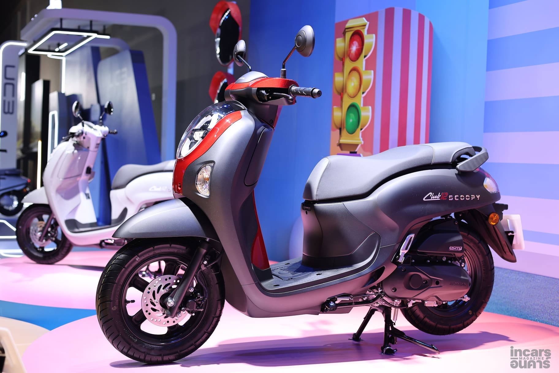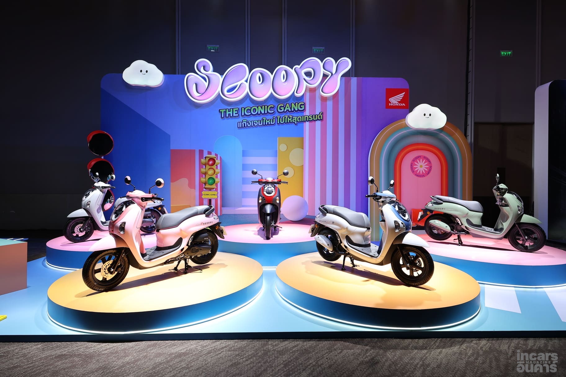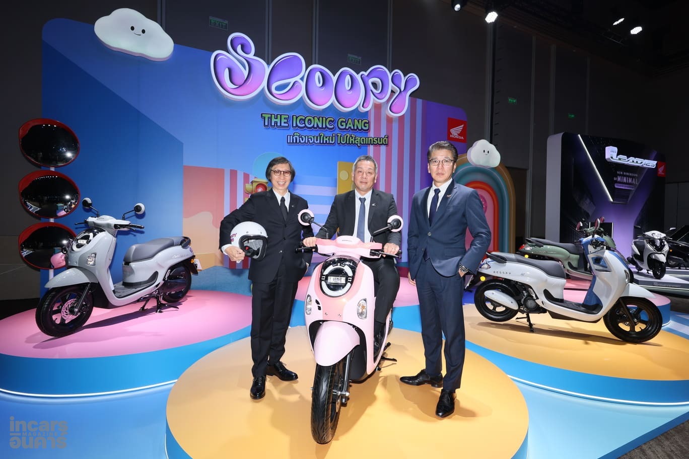 ขณะที่กลุ่มรถเอที New Honda Scoopy ได้กลับมาสร้างสีสันอีกครั้ง ภายใต้คอนเซ็ปต์ ‘The Iconic Gang แก๊งเจนใหม่ ไปให้สุดเทรนด์’ ที่ได้วง ‘LYKN’ มาเป็นพรีเซนเตอร์ใหม่ ถ่ายทอดความสนุกและไลฟ์สไตล์ของคนรุ่นใหม่ โดยได้เนรมิตเฉดสีใหม่ 9 เฉดสี 3 สไตล์ มาให้เลือก วางจำหน่าย 3 รุ่น ได้แก่ รุ่น Club 12 มีให้เลือก 4 สี ได้แก่ สีใหม่ สีชมพู, สีขาว-น้ำเงิน, สีดำ-แดง และสีเทา-ขาว ในราคาแนะนำ 55,100 บาท ตามด้วย รุ่น Prestige เลือกได้ 3 สี ได้แก่ สีเขียว สีดำ และสีขาว ในราคาแนะนำ 53,700 บาท และ รุ่น Urban มีให้เลือก 2 สี ได้แก่ สีฟ้า และสีดำ ในราคาแนะนำ 50,600 บาท