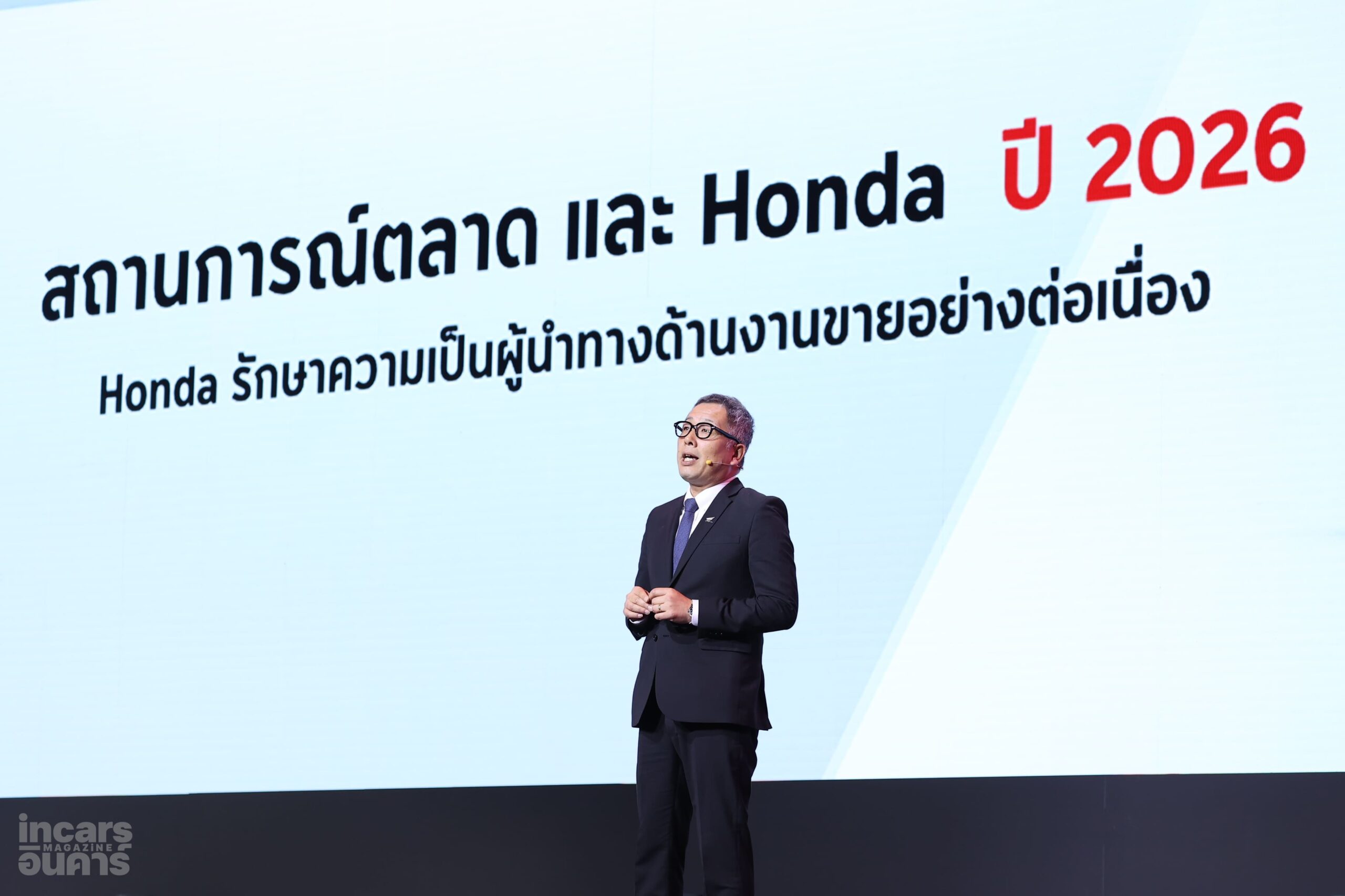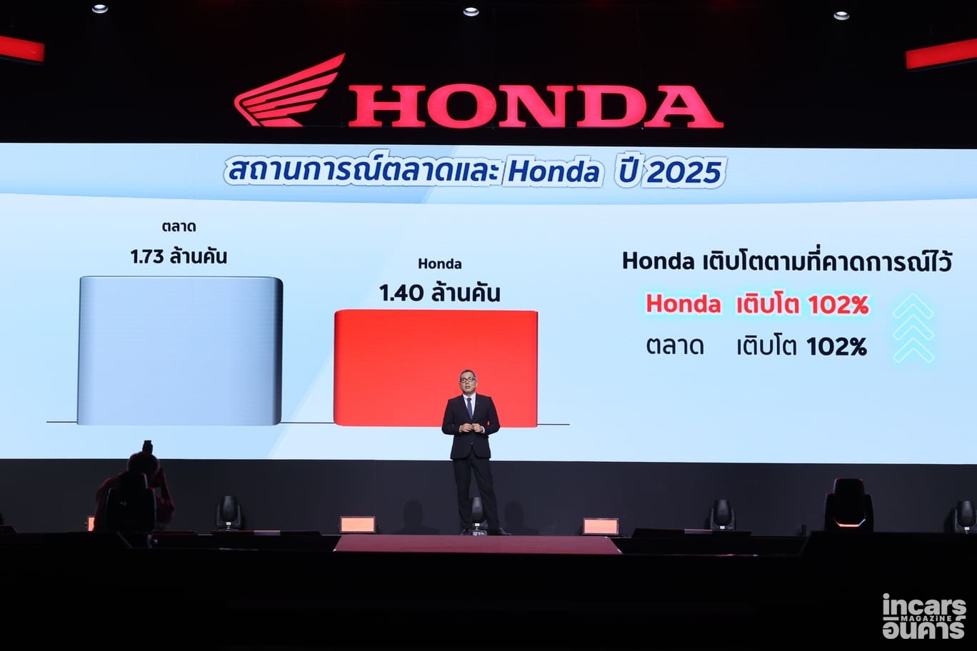 มร.ยูอิจิ ชิมิซุ ประธานกรรมการบริหาร บริษัท ไทยฮอนด้า จำกัด กล่าวว่า “ไทยฮอนด้าให้ความสำคัญกับการพัฒนาผลิตภัณฑ์ บริการ และเทคโนโลยีอย่างต่อเนื่อง เพื่อรองรับความต้องการที่หลากหลายของผู้ใช้งานในชีวิตประจำวัน ประเทศไทยถือเป็นหนึ่งในตลาดยุทธศาสตร์ที่สำคัญของฮอนด้าในภูมิภาคเอเชีย และเป็นศูนย์กลางหลักของธุรกิจรถจักรยานยนต์ในระดับภูมิภาค ในปี 2025 ที่ผ่านมา ตลาดรถจักรยานยนต์ไทยโดยรวมอยู่ที่ 1.73 ล้านคัน ไทยฮอนด้าสามารถสร้างผลงานได้อย่างแข็งแกร่ง ด้วยยอดจำหน่ายรถจักรยานยนต์กว่า 1.40 ล้านคัน เติบโต 102% เมื่อเทียบกับปีก่อนหน้า และครองตำแหน่งผู้นำตลาดรถจักรยานยนต์ในประเทศไทยอย่างต่อเนื่องเป็นปีที่ 37 ความสำเร็จดังกล่าวสะท้อนถึงความแข็งแกร่ง และการสนับสนุนอย่างใกล้ชิดจากเครือข่ายผู้จำหน่ายทั่วประเทศ”