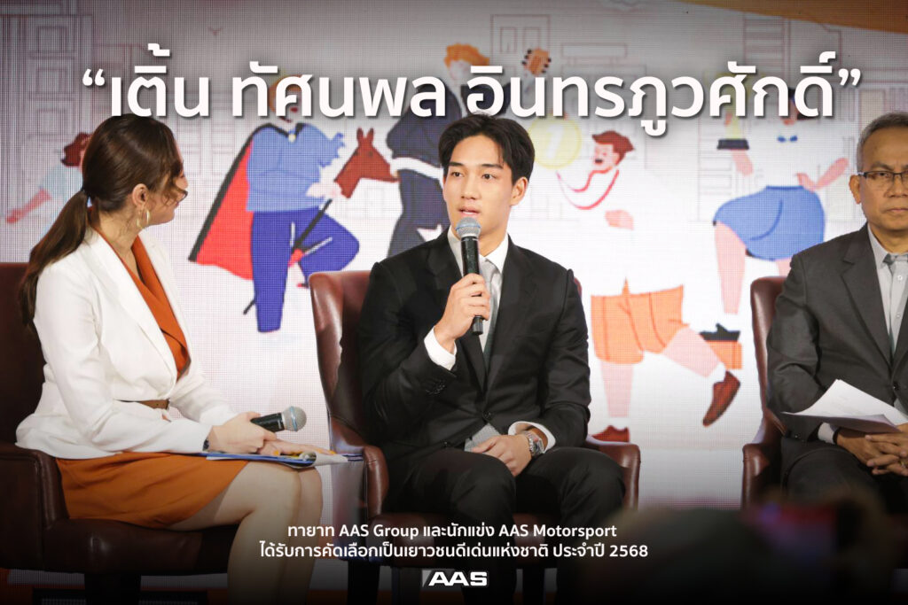 AAS Group กลุ่มบริษัทผู้นำด้านธุรกิจยานยนต์ระดับพรีเมียมในประเทศไทย ครอบคลุมการนำเข้า จำหน่าย และให้บริการหลังการขายแบรนด์ชั้นนำระดับโลก และผู้บุกเบิกการพัฒนาวงการมอเตอร์สปอร์ตไทย ภูมิใจประกาศอีกหนึ่งก้าวสำคัญของ “เติ้น – ทัศนพล อินทรภูวศักดิ์” นักแข่งดาวรุ่งจากทีม AAS Motorsport สายเลือด AAS Group หนึ่งในเยาวชนคนสำคัญที่สร้างชื่อเสียงให้กับประเทศและวงการกีฬาไทย ได้รับการคัดเลือกเป็น “เยาวชนดีเด่นแห่งชาติ ประจำปี 2568” สาขาการศึกษา กีฬา และนันทนาการ