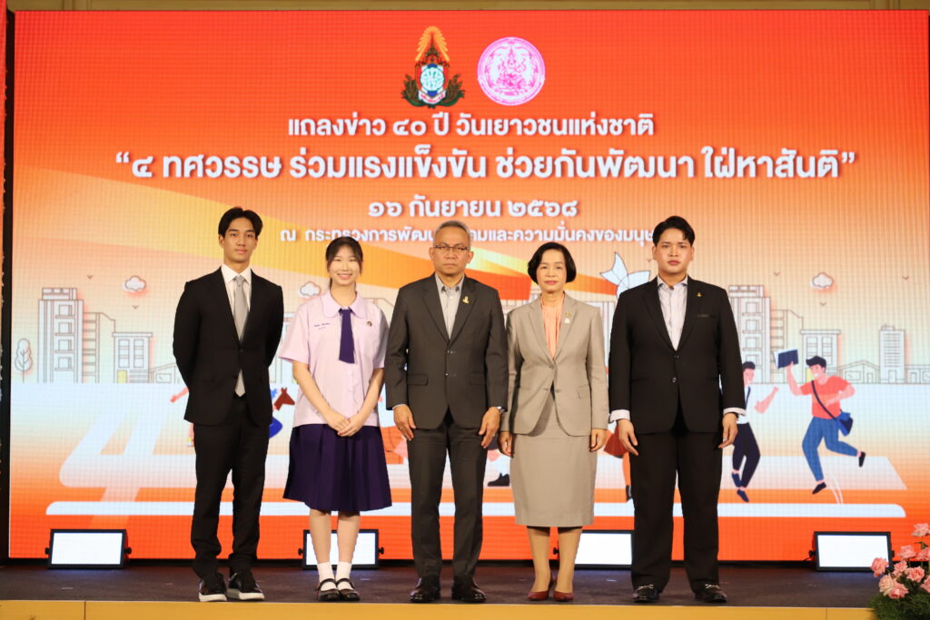 พิธีแถลงข่าวจัดขึ้นเนื่องในโอกาสครบรอบ 40 ปี วันเยาวชนแห่งชาติ ภายใต้แนวคิด “4 ทศวรรษ ร่วมแรงแข็งขัน ช่วยกัน พัฒนา ใฝ่หาสันติ” เพื่อส่งเสริมศักยภาพเด็กและเยาวชนทั่วประเทศ เมื่อวันอังคารที่ 16 กันยายน 2568 ณ กระทรวงการพัฒนาสังคมและความมั่นคงของมนุษย์