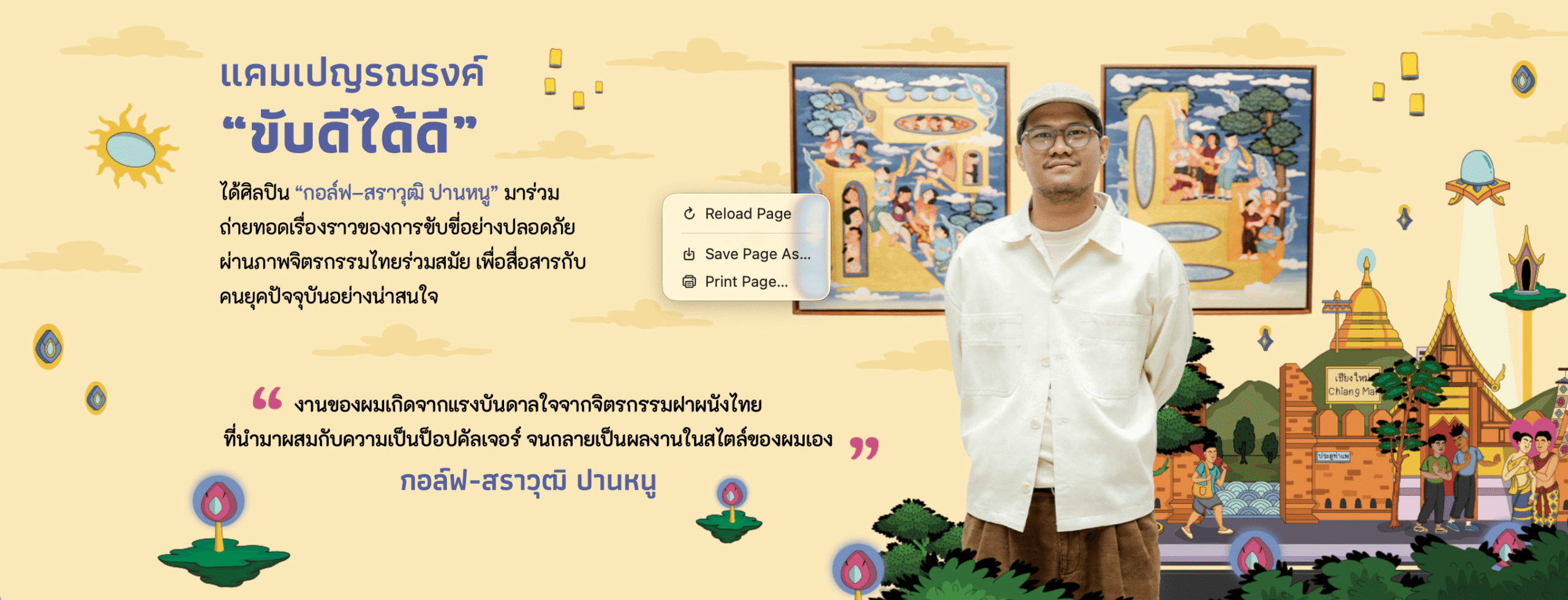 ในการสร้างสรรค์ภาพหลักของแคมเปญบนเว็บไซต์ TMF และ Honda ได้ร่วมมือกับศิลปินไทยรุ่นใหม่ นายสราวุธ พานนู เพื่อนำเสนอผลงานที่ผสานเอกลักษณ์ของศิลปะไทยแบบดั้งเดิมเข้ากับสไตล์ร่วมสมัยอันเป็นเอกลักษณ์ของศิลปินความร่วมมือในครั้งนี้มีเป้าหมายเพื่อสื่อสารแนวคิด “ทำดีได้ดี” ในมิติใหม่ ที่เข้าถึงกลุ่มคนรุ่นใหม่มากขึ้น และสะท้อนแนวคิดของแคมเปญในรูปแบบที่ทั้งทันสมัยและคงไว้ซึ่งรากฐานของวัฒนธรรมไทยนอกจากนี้ ภายในเว็บไซต์แคมเปญยังได้เพิ่มฟีเจอร์เชิงอินเทอร์แอ็กทีฟ “KUB-DEE-DAI-DEE Generator” เพื่อส่งเสริมให้ผู้ใช้เกิดการเปลี่ยนแปลงพฤติกรรมด้านความปลอดภัยบนท้องถนนอย่างเป็นรูปธรรมผู้ใช้งานสามารถเลือกพฤติกรรมการขับขี่ที่ต้องการตระหนักรู้มากขึ้น จากหมวด “KUB-DEE (ขับดี)” ที่แนะนำไว้ในเว็บไซต์ และสามารถสร้างวอลล์เปเปอร์หรือวิดีโอสั้นในสไตล์ของตนเอง เพื่อแชร์ต่อบนโซเชียลมีเดียได้โดยตรงกลไกนี้ไม่เพียงช่วยให้ผู้ใช้ได้รับความรู้ด้านความปลอดภัยเท่านั้น แต่ยังเปิดโอกาสให้ทุกคนได้ “ประกาศเจตนารมณ์แห่งการขับดี” ต่อสังคมรอบข้าง เพื่อกระตุ้นให้เกิดการเปลี่ยนแปลงพฤติกรรมในชีวิตประจำวันอย่างต่อเนื่อง