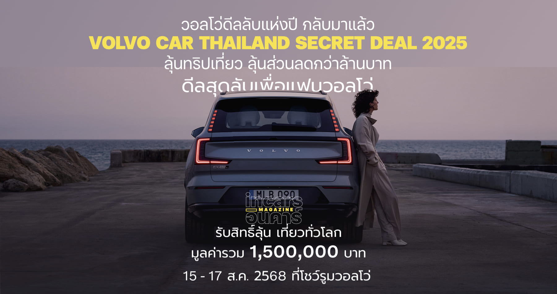 ดีลลับแห่งปี กลับมาแล้ว Volvo Secret Deal 2025 ระหว่าง 15-17 สิงหาคม นี้ ลุ้นทริปเที่ยวรอบโลกรวม 1,500,000 บาท พร้อมรับส่วนลดรถวอลโว่สูงสุด 1,100,000 บาท